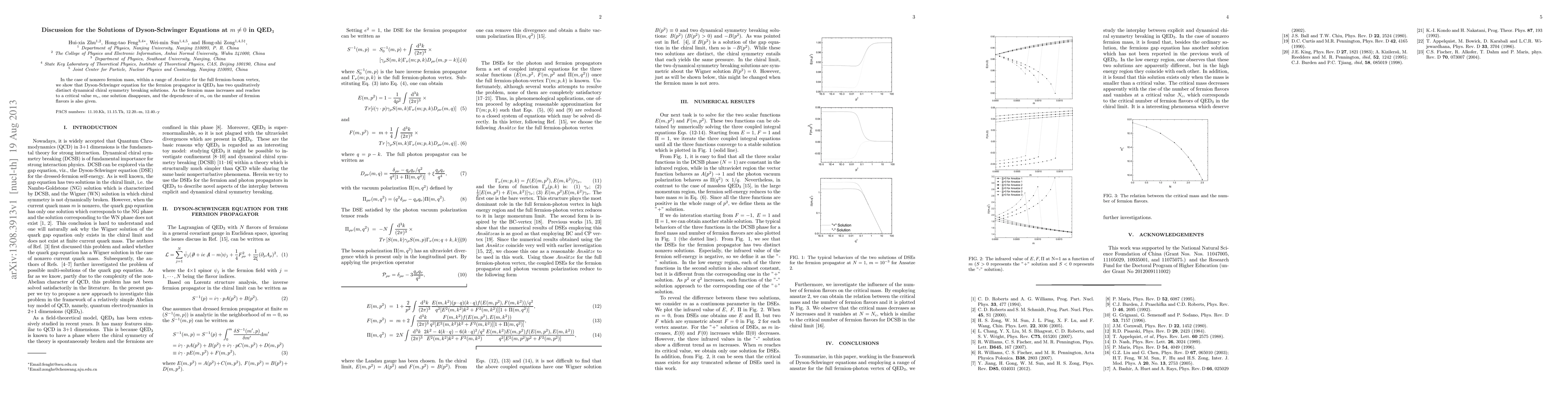 This paper explores solutions to the Dyson-Schwinger equation for the fermion propagator in QED3 with nonzero fermion mass, revealing two distinct dynamical chiral symmetry breaking solutions. As the fermion mass approaches a critical value mc, one solution vanishes, and the study provides a dependency of mc on the number of fermion flavors.