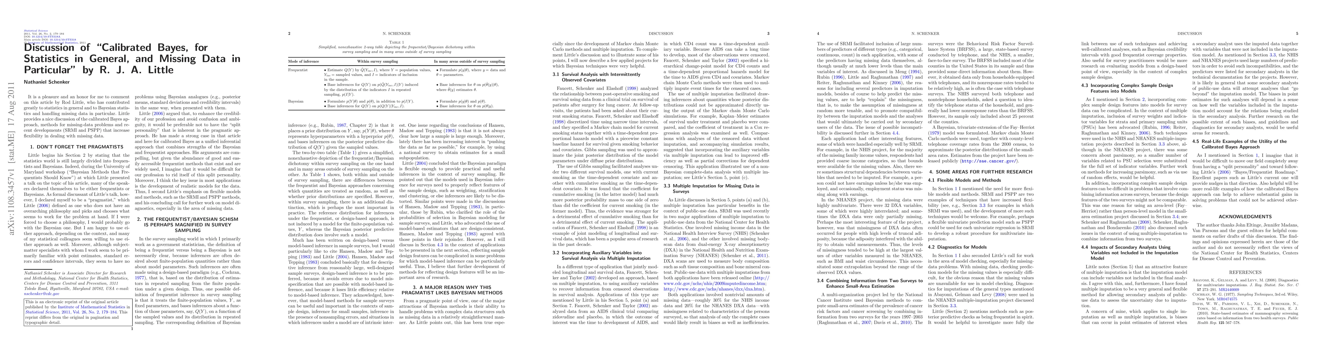Discussion of "Calibrated Bayes, for Statistics in General, and Missing Data in Particular" by R. Little [arXiv:1108.1917]