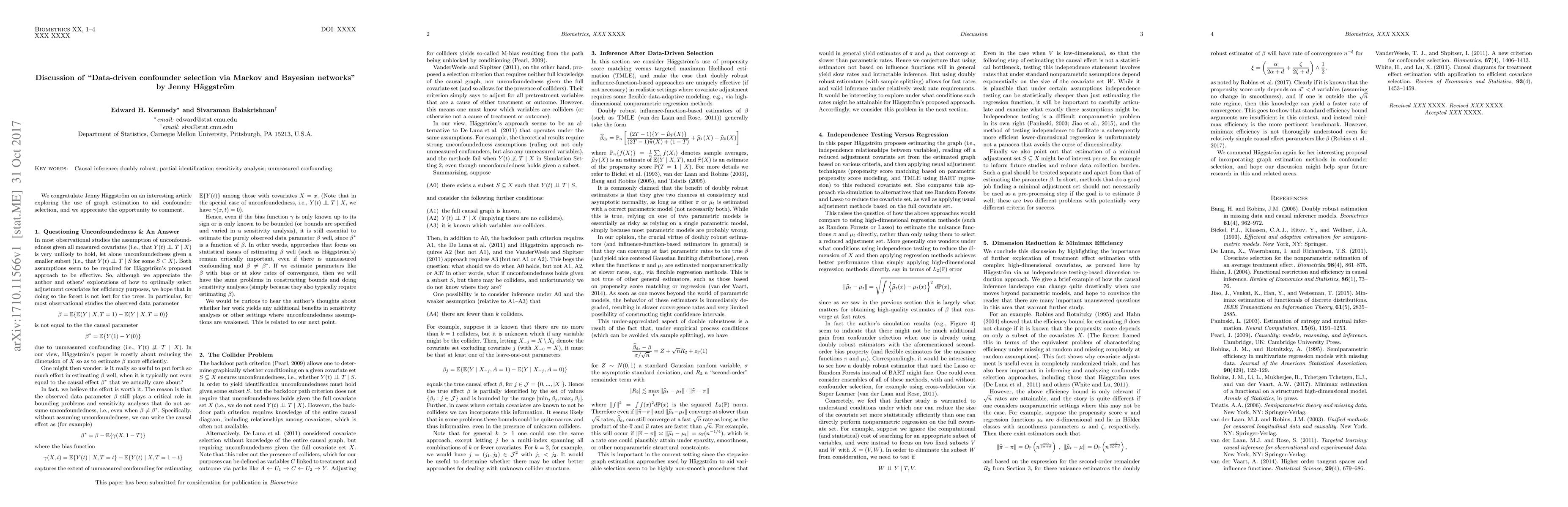 In this discussion we consider why it is important to estimate causal effect parameters well even they are not identified, propose a partially identified approach for causal inference in the presence of colliders, point out an under-appreciated advantage of double robustness, discuss the relative difficulty of independence testing versus regression, and finally commend H\"aggstr\"om for her exploration of causal inference with high-dimensional confounding, while making a call for further research in this same vein.