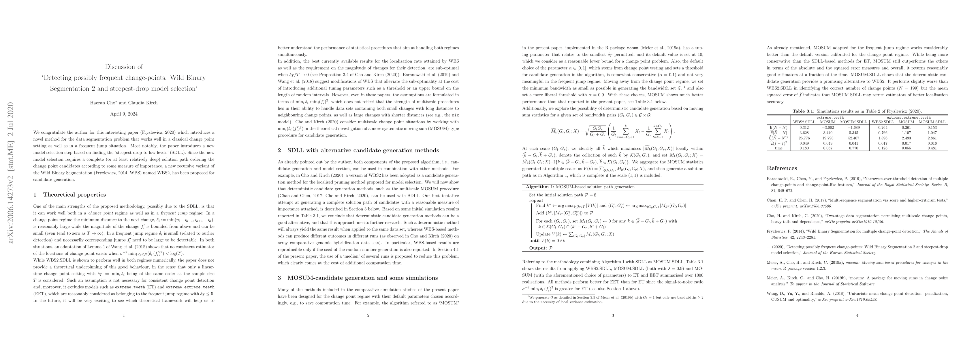 We discuss the theoretical guarantee provided by the WBS2.SDLL proposed in Fryzlewicz (2020) and explore an alternative, MOSUM-based candidate generation method for the SDLL.