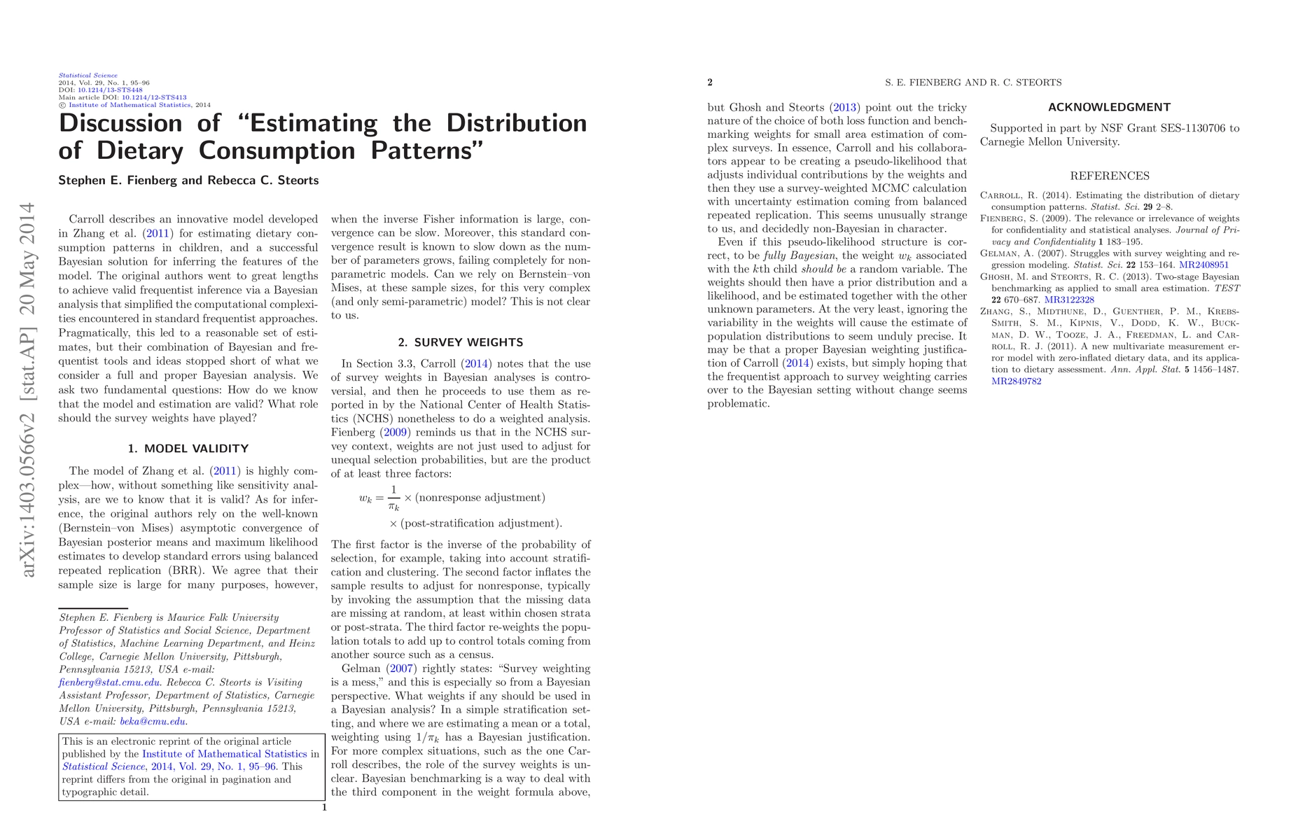 Discussion of "Estimating the Distribution of Dietary Consumption Patterns" by Raymond J. Carroll [arXiv:1405.4667].