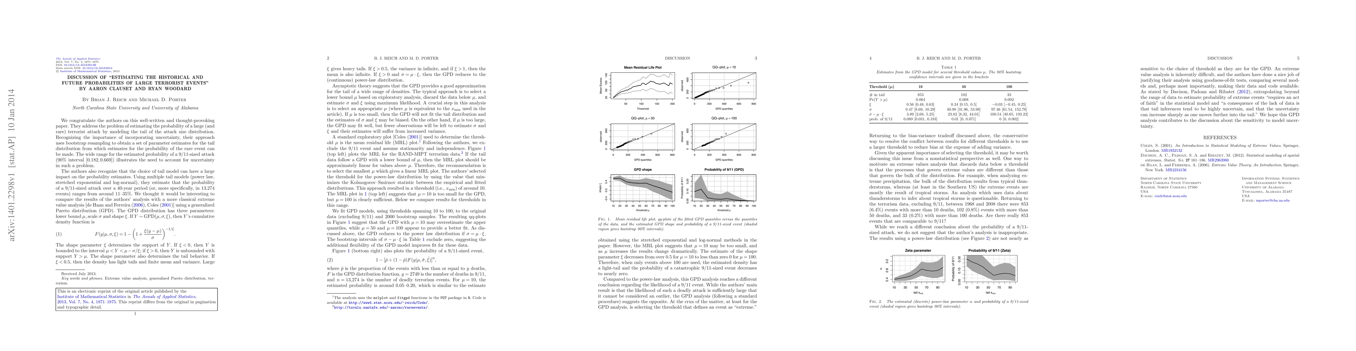 Discussion of "Estimating the historical and future probabilities of large terrorist events" by Aaron Clauset and Ryan Woodard [arXiv:1209.0089].