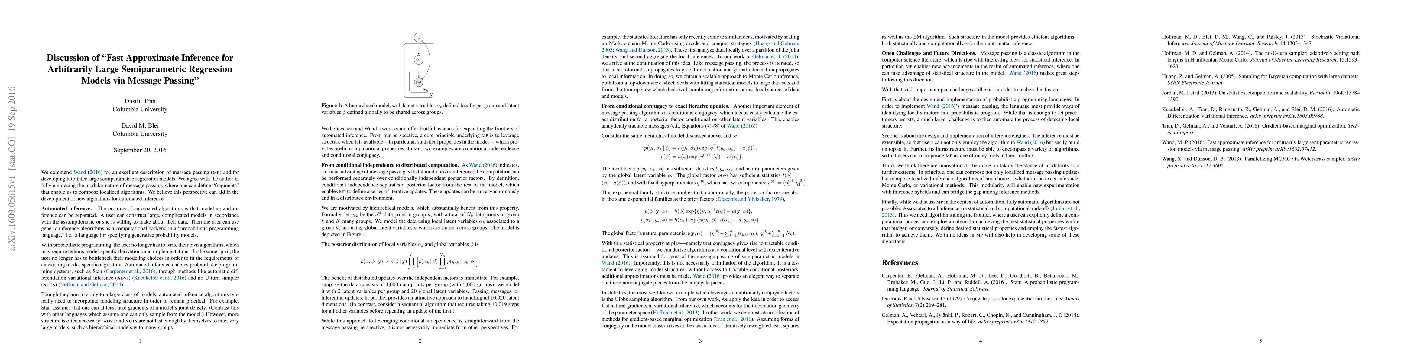 Discussion paper on "Fast Approximate Inference for Arbitrarily Large Semiparametric Regression Models via Message Passing" by Wand [arXiv:1602.07412].