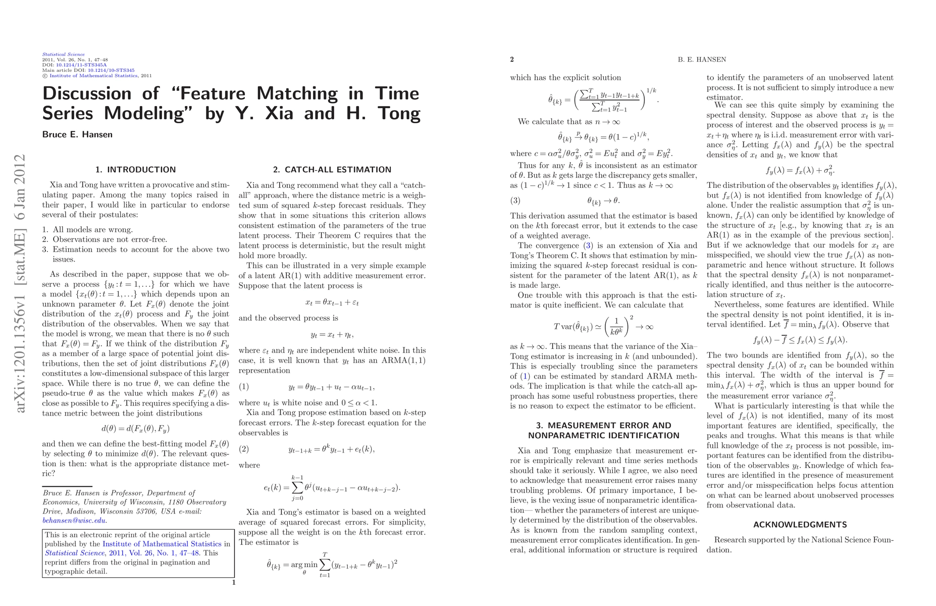 Discussion of "Feature Matching in Time Series Modeling" by Y. Xia and H. Tong [arXiv:1104.3073]