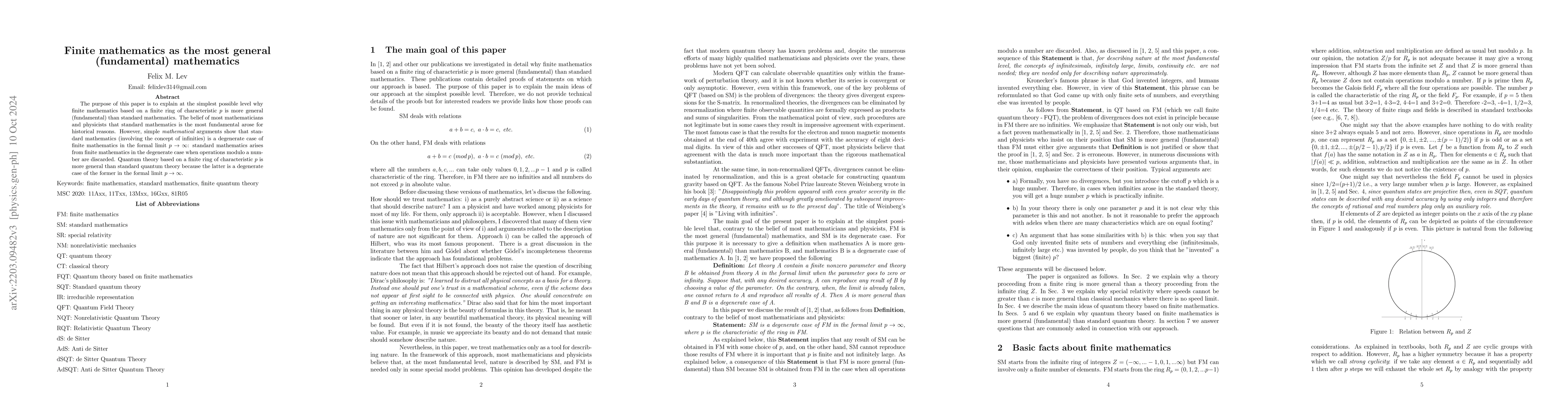 This paper argues that finite mathematics, grounded in a finite ring of characteristic $p$, provides a more fundamental foundation than classical mathematics, which emerges as a special case when $p\to\infty$. It also posits that quantum theory based on finite mathematics is more general than standard quantum theory, which is a limiting case in the same formal limit.