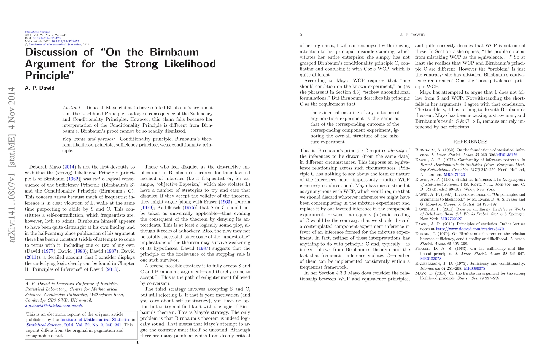 Deborah Mayo claims to have refuted Birnbaum's argument that the Likelihood Principle is a logical consequence of the Sufficiency and Conditionality Principles. However, this claim fails because her interpretation of the Conditionality Principle is different from Birnbaum's. Birnbaum's proof cannot be so readily dismissed. [arXiv:1302.7021]