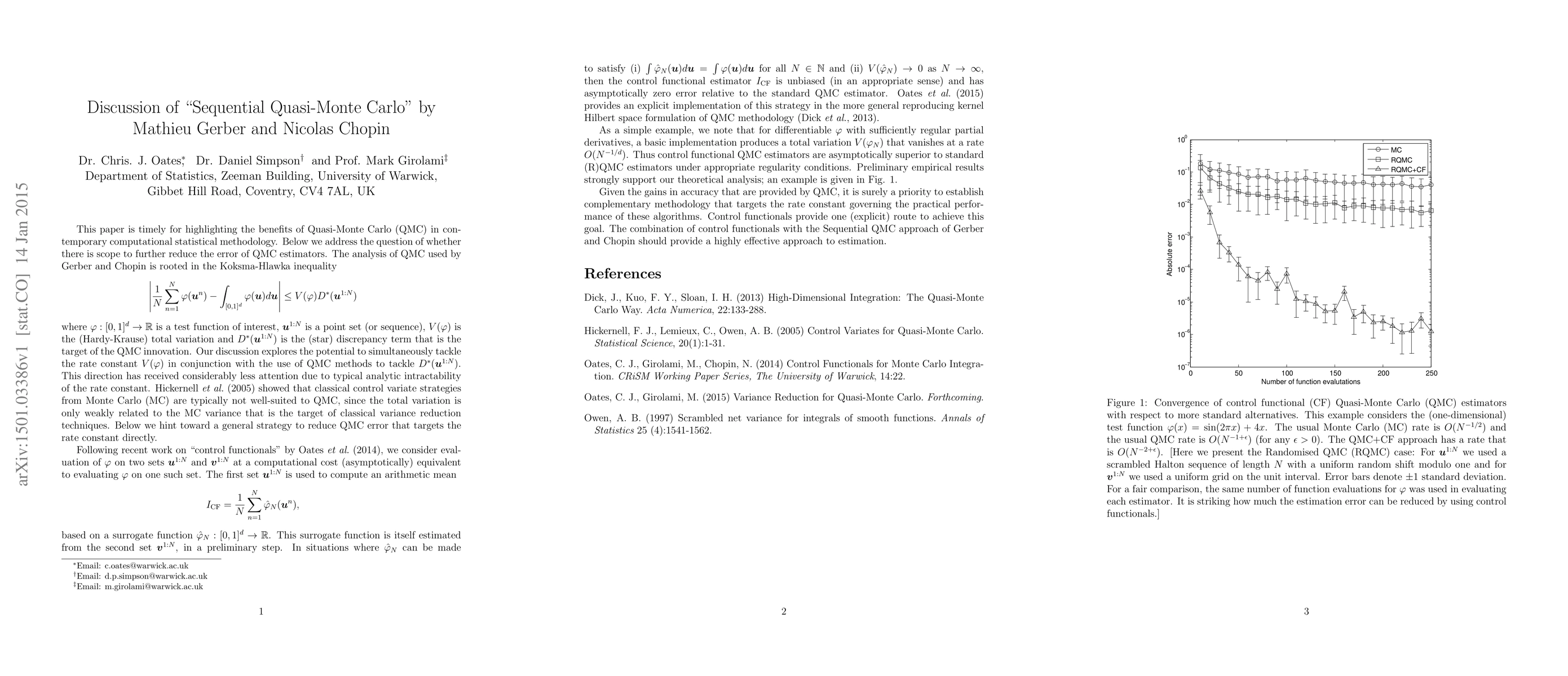 A discussion on the possibility of reducing the variance of quasi-Monte Carlo estimators in applications. Further details are provided in the accompanying paper "Variance Reduction for Quasi-Monte Carlo".