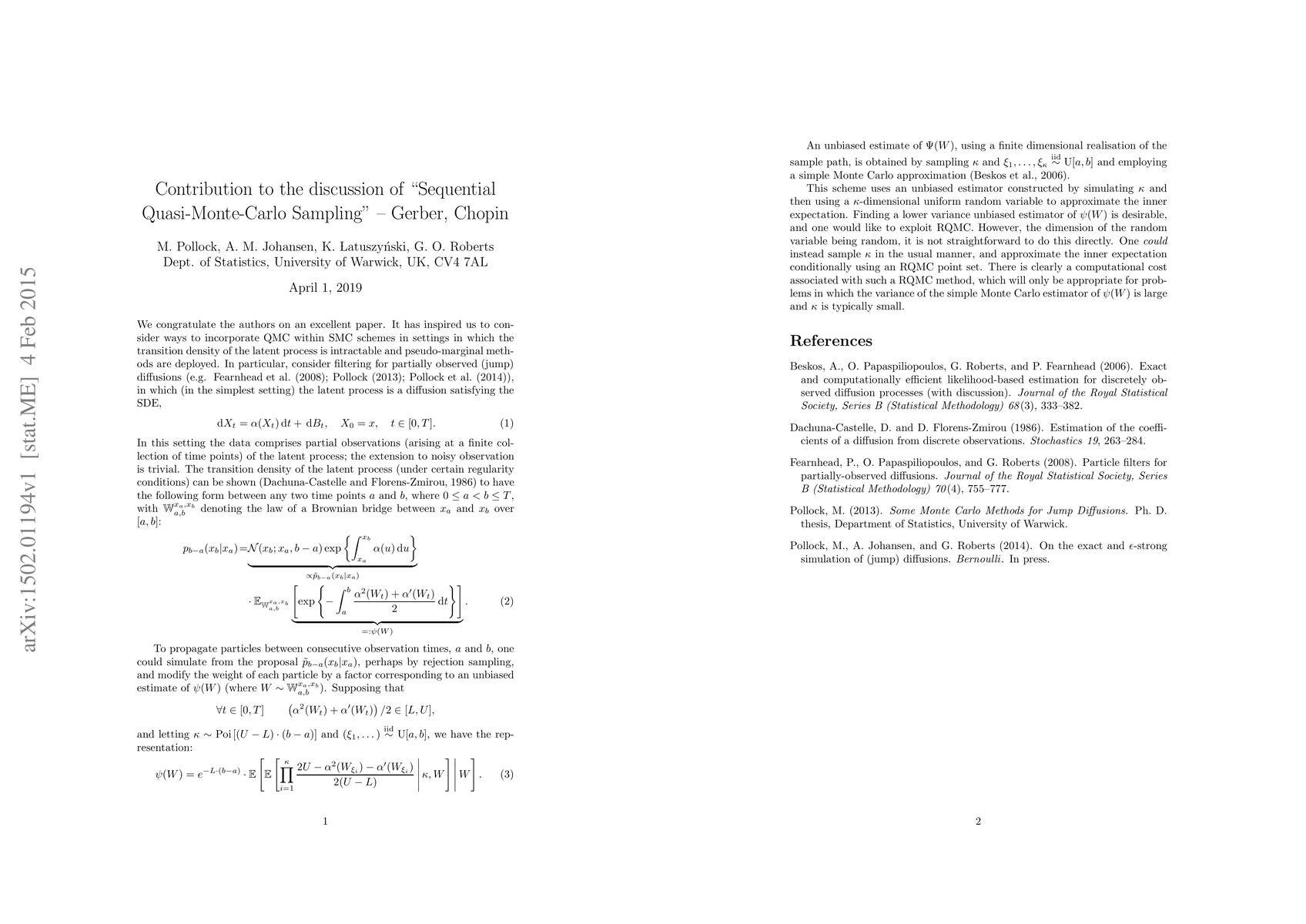 In this comment we consider whether QMC methods can be further embedded within SMC schemes in settings in which the transition density of the latent process is intractable and pseudo-marginal methods are deployed.
