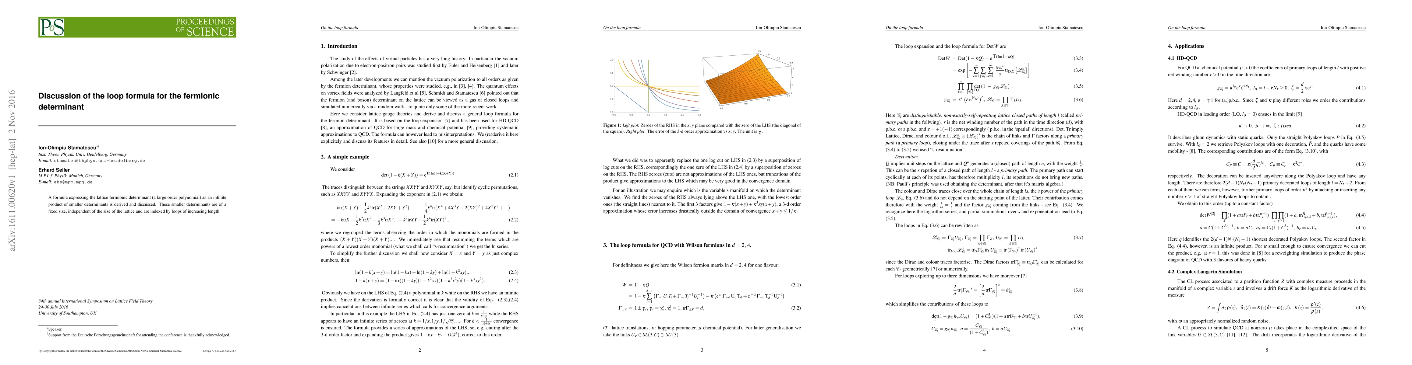 A formula expressing the fermionic determinant (a large order polynomial) as an infinite product of smaller determinants is derived and discussed. These smaller determinants are of a fixed size, independent of the size of the lattice and are indexed by loops of increasing length.