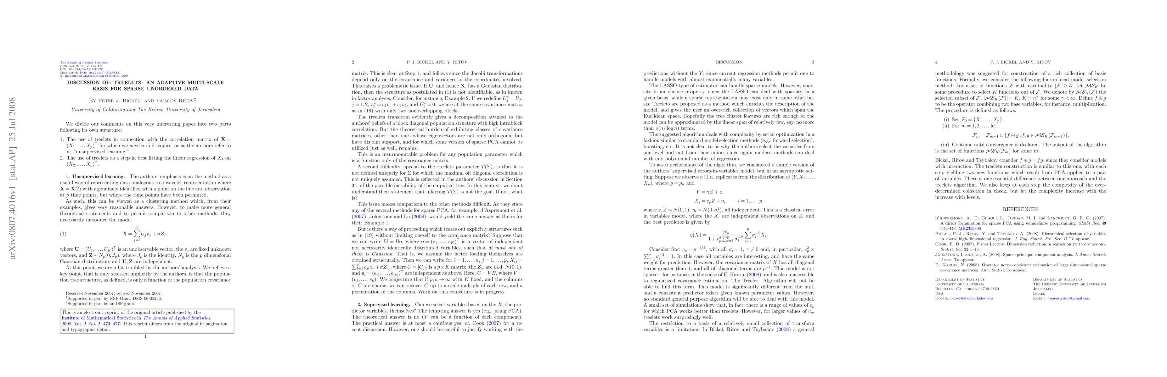 Discussion of "Treelets--An adaptive multi-scale basis for sparse unordered data" [arXiv:0707.0481]