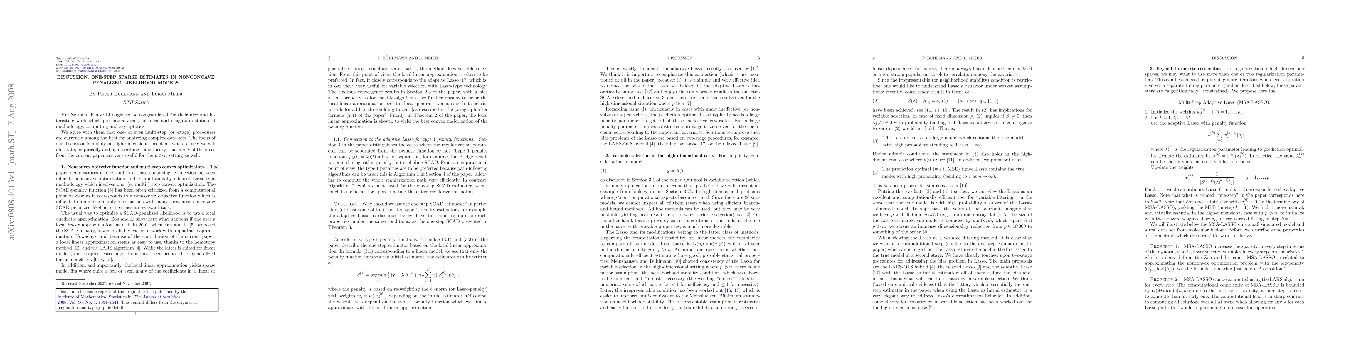 Discussion of ``One-step sparse estimates in nonconcave penalized likelihood models'' [arXiv:0808.1012]