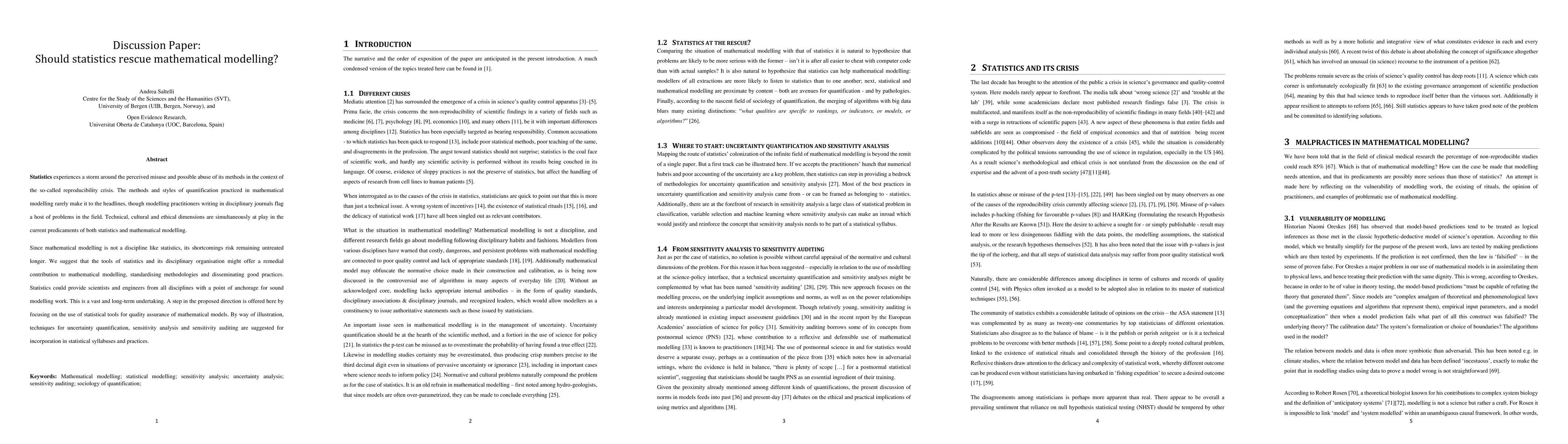 This paper proposes that statistics can help improve mathematical modelling by standardizing methodologies and disseminating good practices for quality assurance and uncertainty quantification.