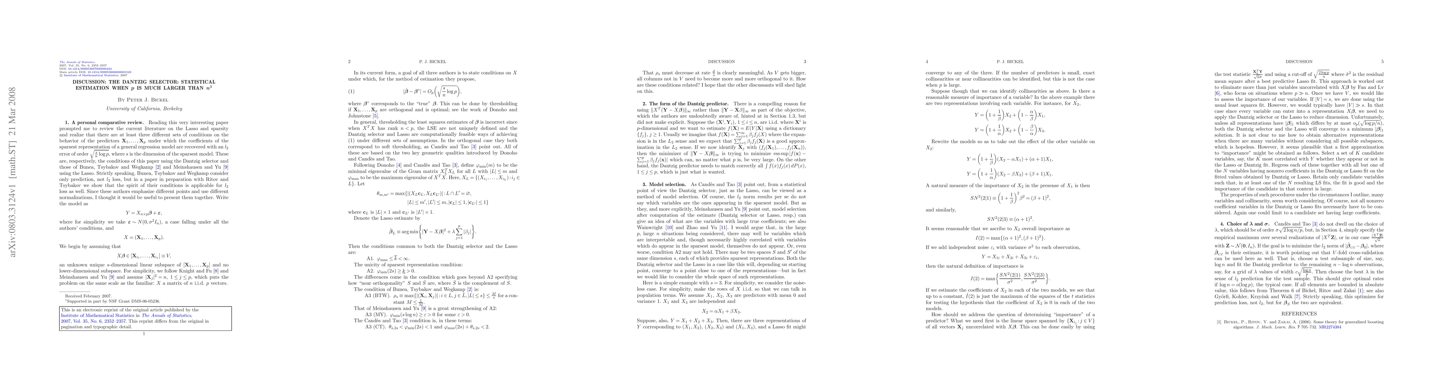 Discussion of "The Dantzig selector: Statistical estimation when $p$ is much larger than $n$" [math/0506081]