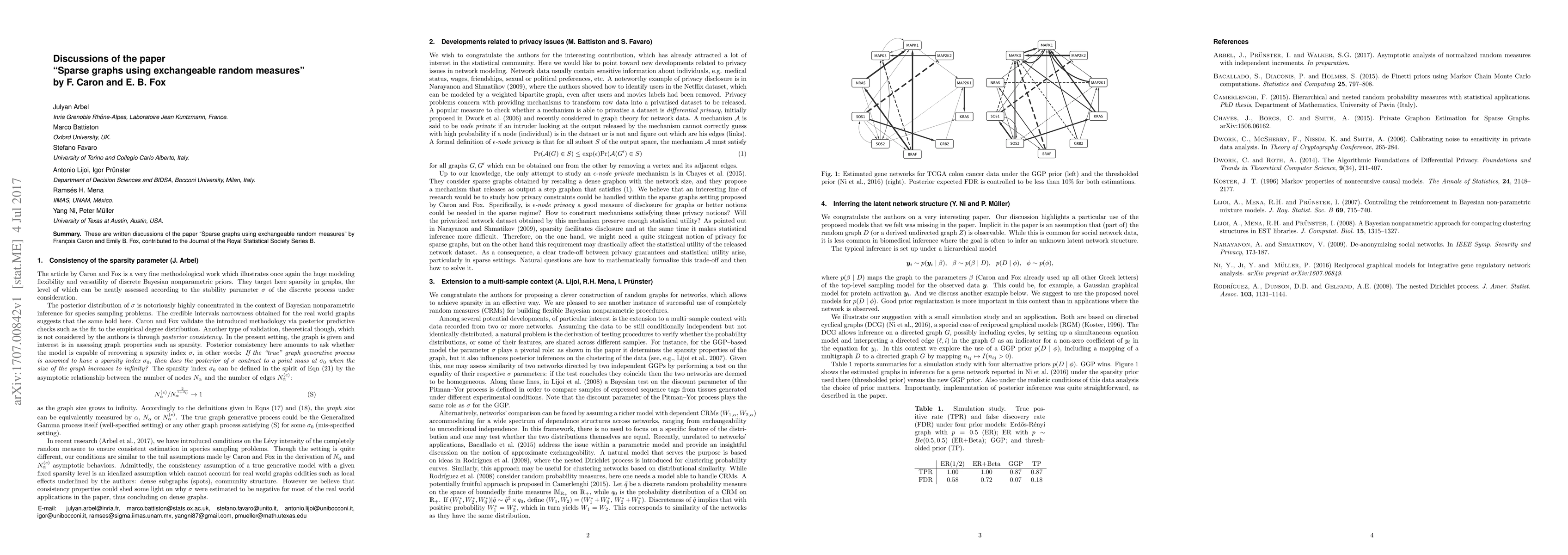 These are written discussions of the paper "Sparse graphs using exchangeable random measures" by Fran\c{c}ois Caron and Emily B. Fox, contributed to the Journal of the Royal Statistical Society Series B.