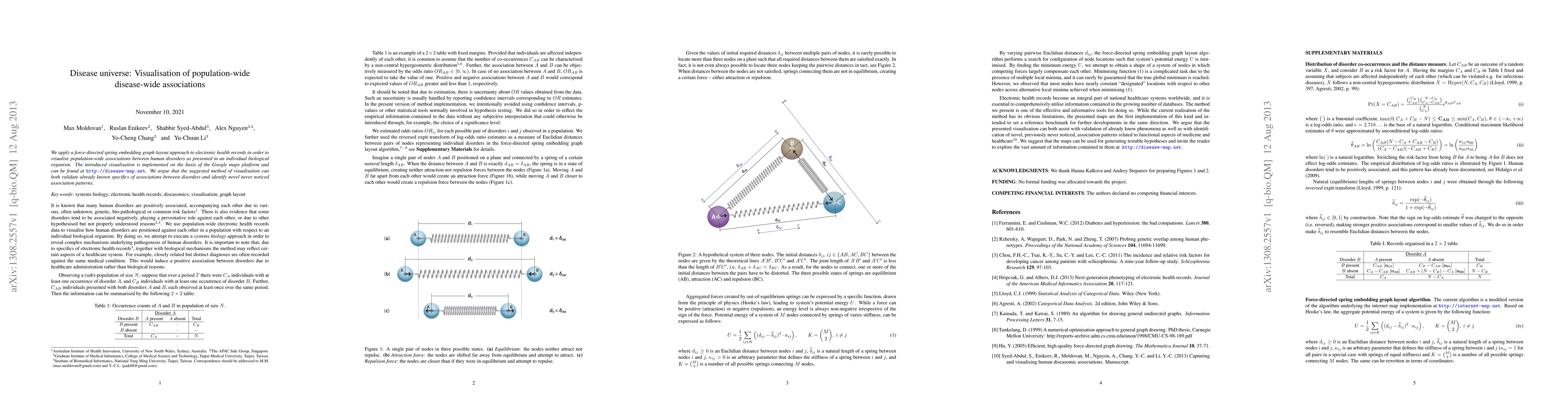 We apply a force-directed spring embedding graph layout approach to electronic health records in order to visualise population-wide associations between human disorders as presented in an individual biological organism. The introduced visualisation is implemented on the basis of the Google maps platform and can be found at http://disease-map.net . We argue that the suggested method of visualisation can both validate already known specifics of associations between disorders and identify novel never noticed association patterns.