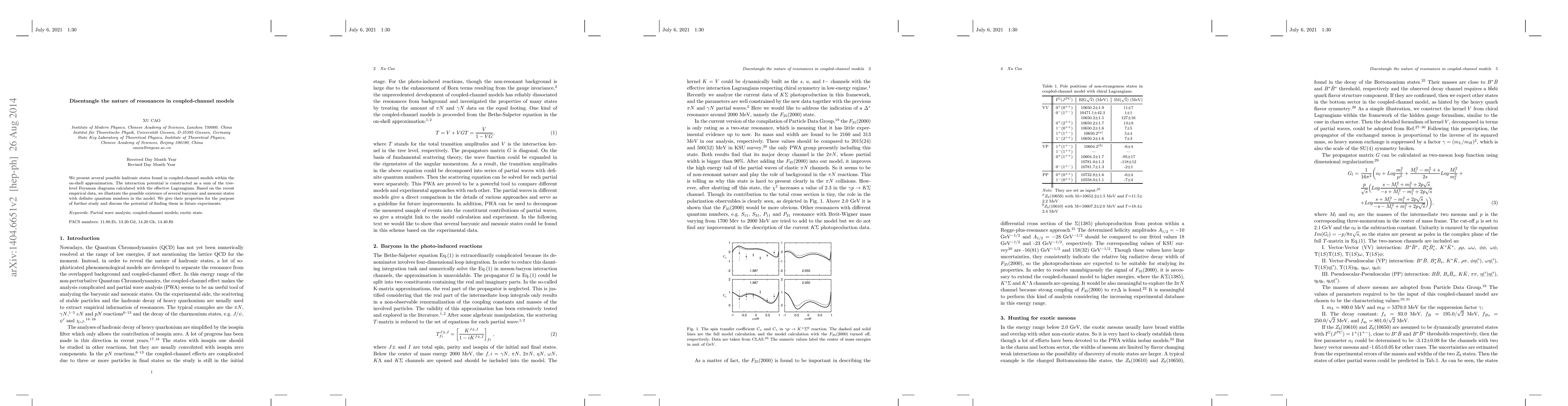 We present several possible hadronic states found in coupled-channel models within the on-shell approximation. The interaction potential is constructed as a sum of the tree-level Feynman diagrams calculated with the effective Lagrangians. Based on the recent empirical data, we illustrate the possible existence of several baryonic and mesonic states with definite quantum numbers in the model. We give their properties for the purpose of further study and discuss the potential of finding them in future experiments.