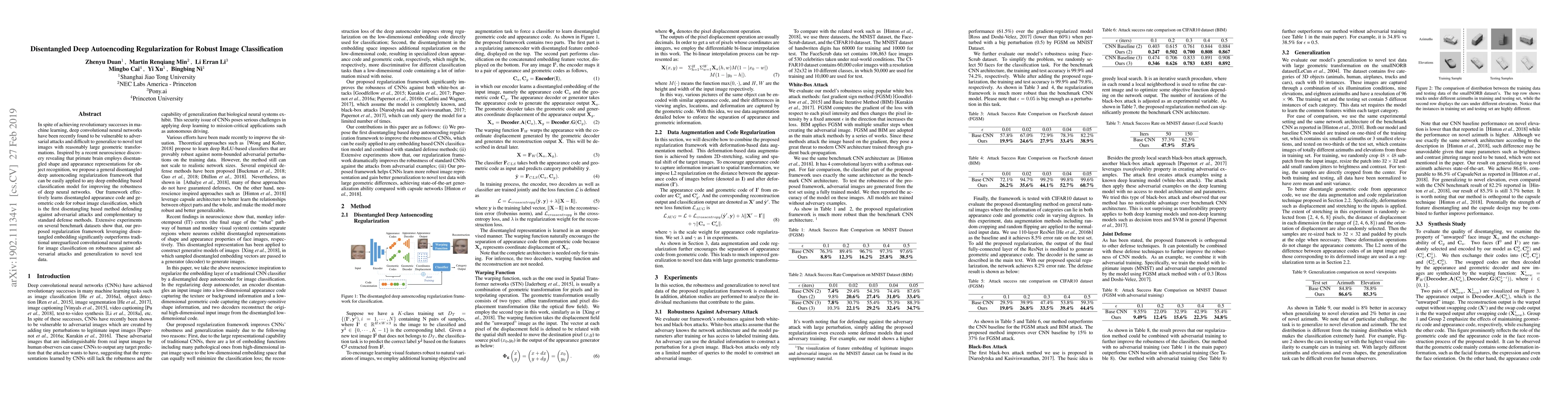 This paper proposes a disentangled deep autoencoding regularization framework to enhance the robustness of deep neural networks against adversarial attacks and improve generalization to novel images. The method effectively learns separate representations for appearance and geometric transformations, outperforming traditional CNNs on robustness and generalization tasks.