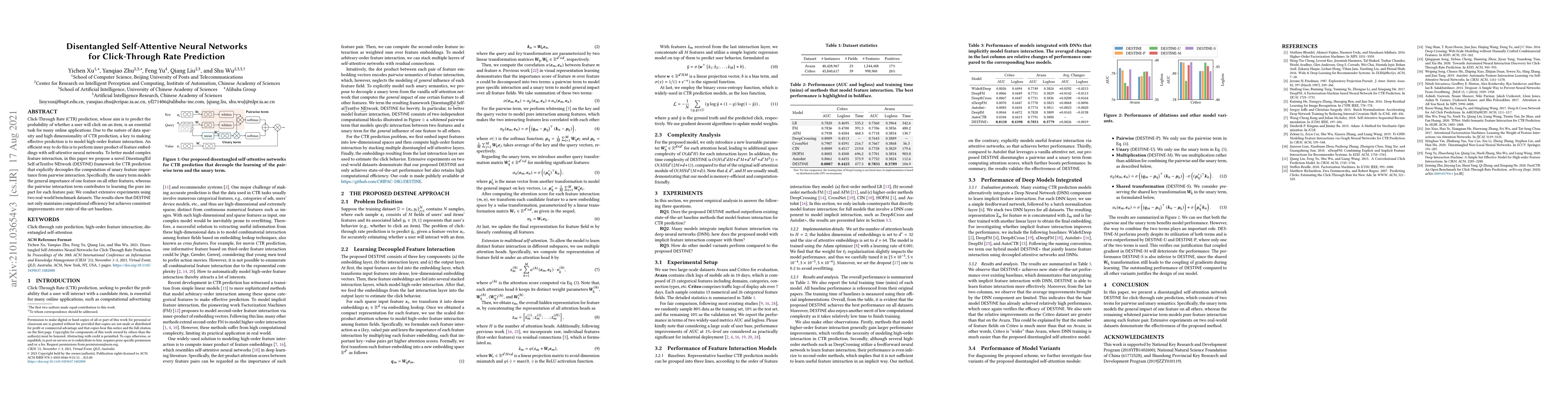The paper proposes a DisentanglEd Self-atTentIve NEtwork (DESTINE) framework to enhance Click-Through Rate (CTR) prediction by decoupling feature importance computation from pairwise interactions, achieving both computational efficiency and superior performance over baselines.