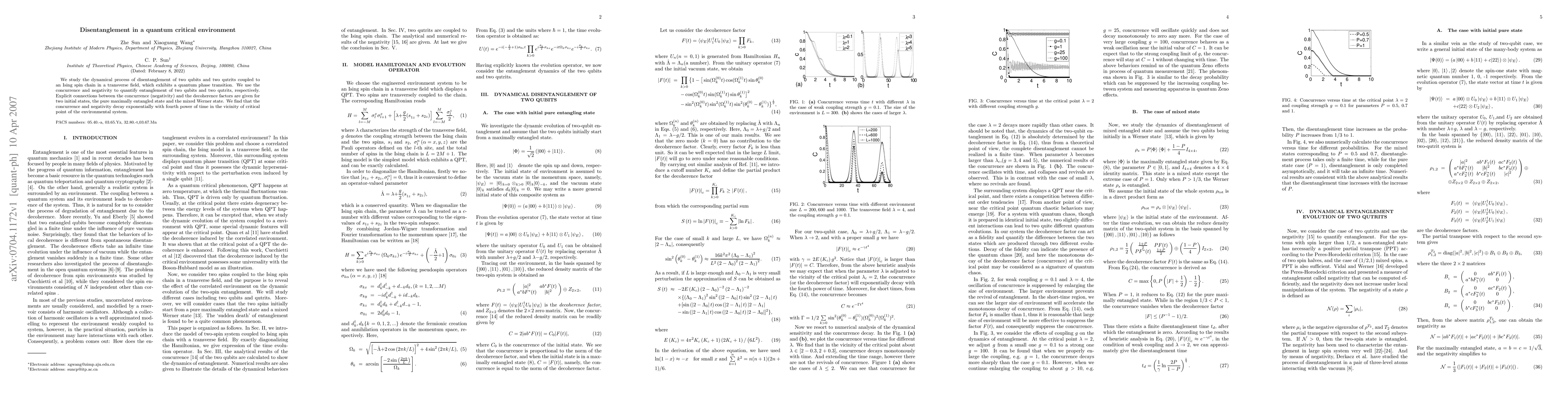 We study the dynamical process of disentanglement of two qubits and two qutrits coupled to an Ising spin chain in a transverse field, which exhibits a quantum phase transition. We use the concurrence and negativity to quantify entanglement of two qubits and two qutrits, respectively. Explicit connections between the concurrence (negativity) and the decoherence factors are given for two initial states, the pure maximally entangled state and the mixed Werner state. We find that the concurrence and negativity decay exponentially with fourth power of time in the vicinity of critical point of the environmental system.