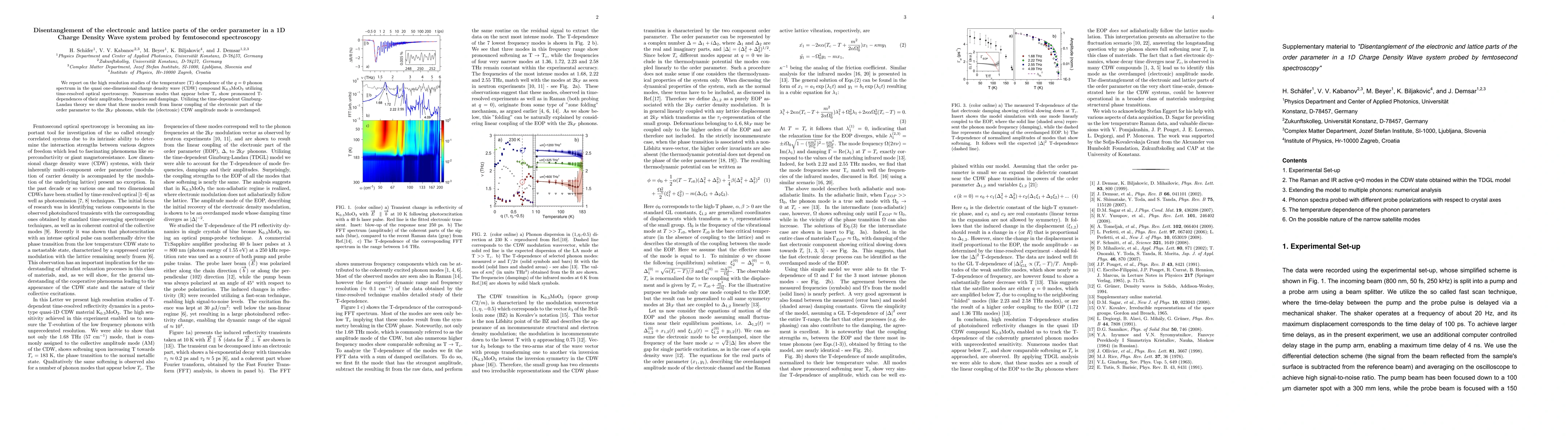 We report on the high resolution studies of the temperature (T) dependence of the q=0 phonon spectrum in the quasi one-dimensional charge density wave (CDW) compound K0.3MoO3 utilizing time-resolved optical spectroscopy. Numerous modes that appear below Tc show pronounced T-dependences of their amplitudes, frequencies and dampings. Utilizing the time-dependent Ginzburg-Landau theory we show that these modes result from linear coupling of the electronic part of the order parameter to the 2kF phonons, while the (electronic) CDW amplitude mode is overdamped.