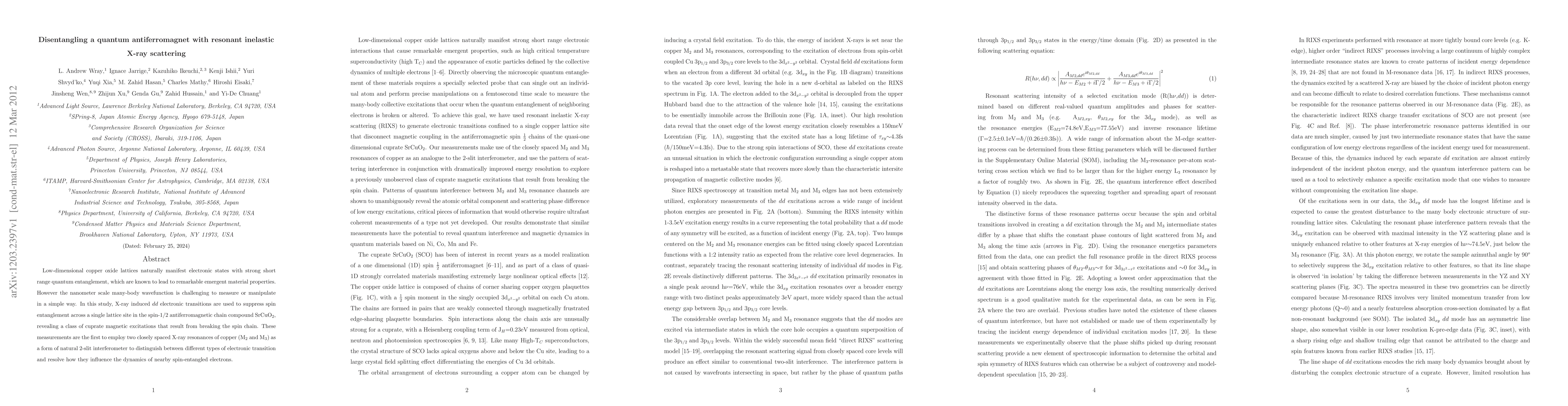 Researchers used X-ray scattering to study a quantum antiferromagnet, revealing how breaking spin chains affects electronic transitions and nearby spin-entangled electrons. They created a natural 2-slit interferometer using two closely spaced X-ray resonances to distinguish between different types of electronic transitions.