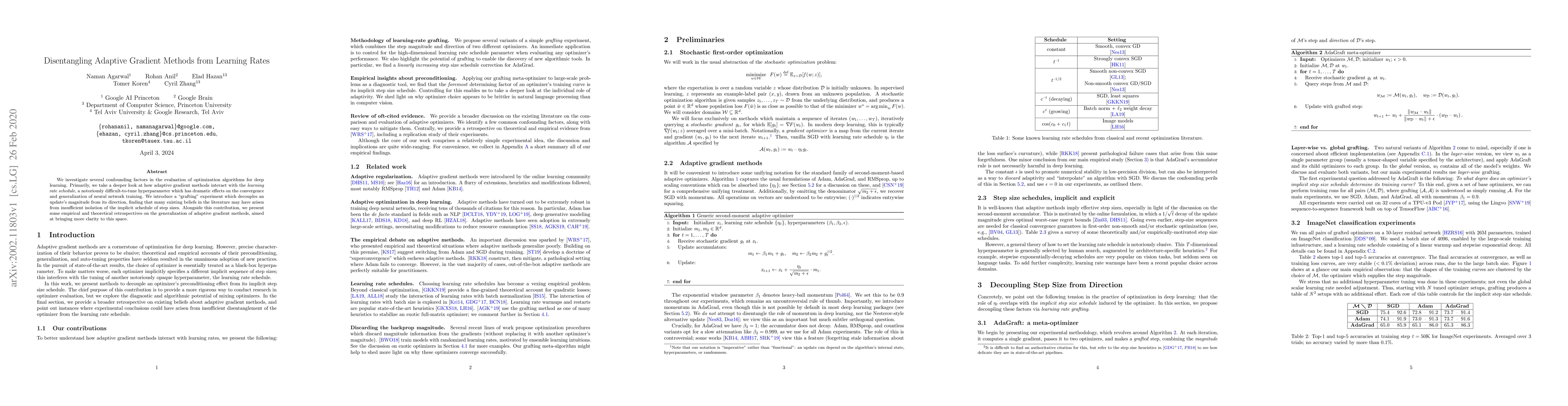 This paper explores the interaction between adaptive gradient methods and learning rate schedules in deep learning optimization, revealing that many existing beliefs may stem from inadequate separation of step size schedules. It introduces a "grafting" experiment to disentangle update magnitude from direction, providing new insights into the generalization of adaptive gradient methods.