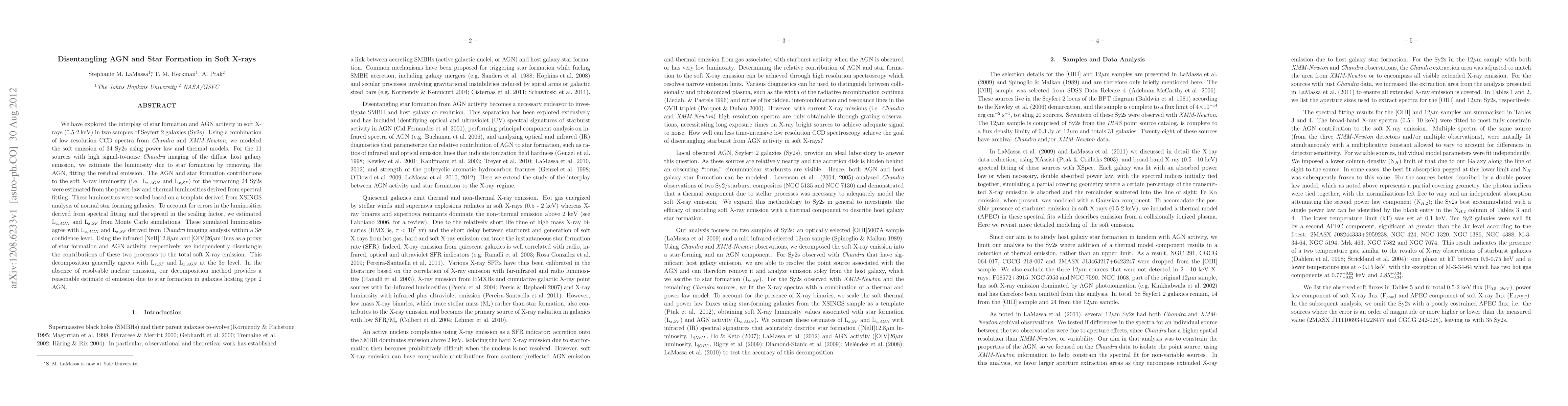 This study disentangles the contributions of AGN activity and star formation to the soft X-ray emission in Seyfert 2 galaxies using spectral modeling and infrared line analysis. The results suggest that both processes contribute to the soft X-ray luminosity, with estimates generally agreeing within 3σ confidence levels.