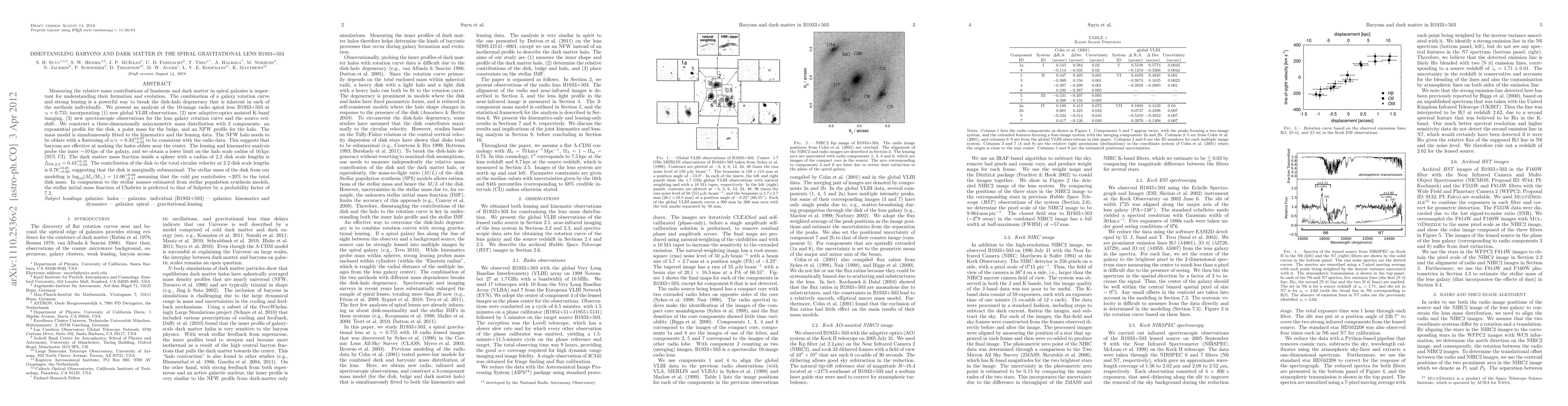 Measuring the relative mass contributions of luminous and dark matter in spiral galaxies is important for understanding their formation and evolution. The combination of a galaxy rotation curve and strong lensing is a powerful way to break the disk-halo degeneracy that is inherent in each of the methods individually. We present an analysis of the 10-image radio spiral lens B1933+503 at z_l=0.755, incorporating (1) new global VLBI observations, (2) new adaptive-optics assisted K-band imaging, (3) new spectroscopic observations for the lens galaxy rotation curve and the source redshift. We construct a three-dimensionally axisymmetric mass distribution with 3 components: an exponential profile for the disk, a point mass for the bulge, and an NFW profile for the halo. The mass model is simultaneously fitted to the kinematics and the lensing data. The NFW halo needs to be oblate with a flattening of a/c=0.33^{+0.07}_{-0.05} to be consistent with the radio data. This suggests that baryons are effective at making the halos oblate near the center. The lensing and kinematics analysis probe the inner ~10 kpc of the galaxy, and we obtain a lower limit on the halo scale radius of 16 kpc (95% CI). The dark matter mass fraction inside a sphere with a radius of 2.2 disk scale lengths is f_{DM,2.2}=0.43^{+0.10}_{-0.09}. The contribution of the disk to the total circular velocity at 2.2 disk scale lengths is 0.76^{+0.05}_{-0.06}, suggesting that the disk is marginally submaximal. The stellar mass of the disk from our modeling is log_{10}(M_{*}/M_{sun}) = 11.06^{+0.09}_{-0.11} assuming that the cold gas contributes ~20% to the total disk mass. In comparison to the stellar masses estimated from stellar population synthesis models, the stellar initial mass function of Chabrier is preferred to that of Salpeter by a probability factor of 7.2.