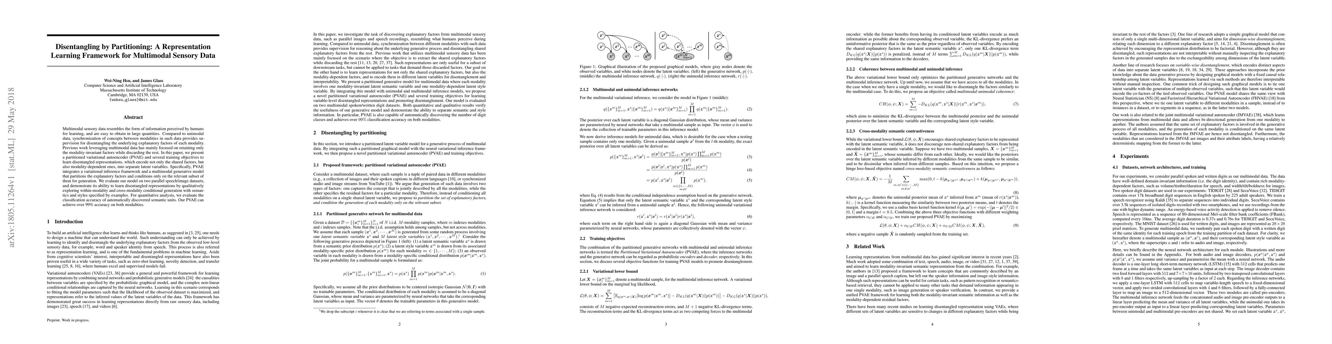 This paper introduces a partitioned variational autoencoder (PVAE) to learn disentangled representations from multimodal sensory data, capturing both shared and modality-specific factors. The PVAE achieves high classification accuracy, demonstrating its effectiveness in generating semantically meaningful representations.