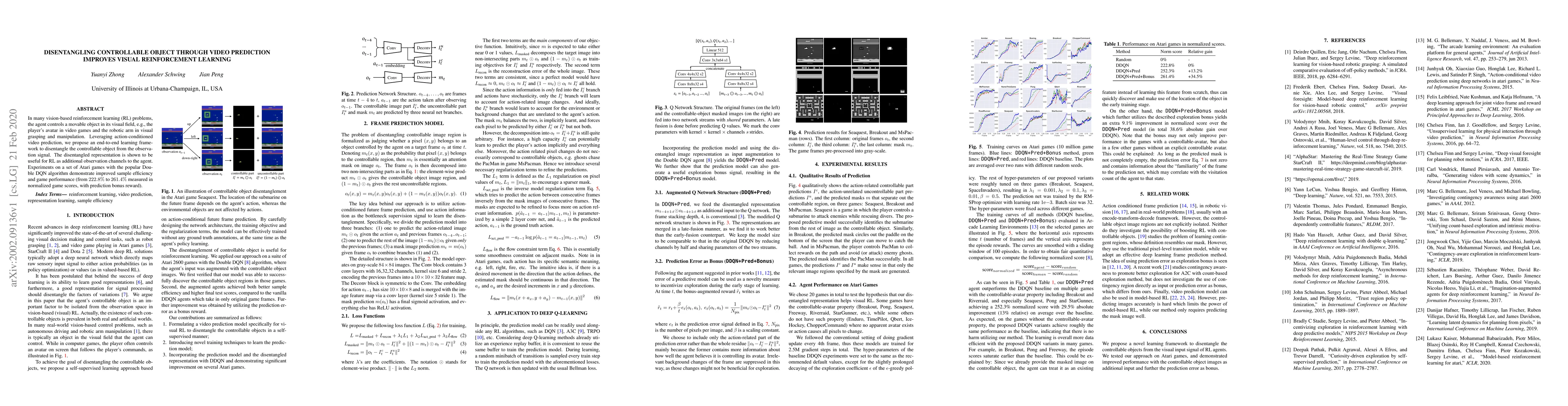 This paper proposes a framework that uses action-conditioned video prediction to disentangle controllable objects from observation signals in visual reinforcement learning, enhancing sample efficiency and performance in Atari games by up to 261.4% in normalized game scores.