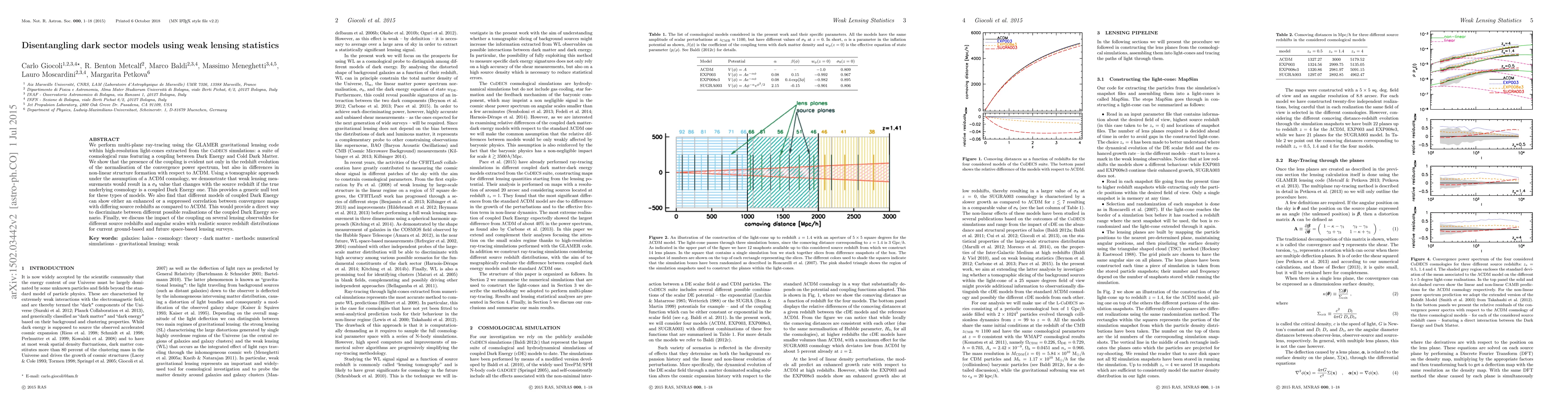 We perform multi-plane ray-tracing using the GLAMER gravitational lensing code within high-resolution light-cones extracted from the CoDECS simulations: a suite of cosmological runs featuring a coupling between Dark Energy and Cold Dark Matter. We show that the presence of the coupling is evident not only in the redshift evolution of the normalisation of the convergence power spectrum, but also in differences in non-linear structure formation with respect to {\Lambda}CDM. Using a tomographic approach under the assumption of a {\Lambda}CDM cosmology, we demonstrate that weak lensing measurements would result in a {\sigma}8 value that changes with the source redshift if the true underlying cosmology is a coupled Dark Energy one. This provides a generic null test for these types of models. We also find that different models of coupled Dark Energy can show either an enhanced or a suppressed correlation between convergence maps with differing source redshifts as compared to {\Lambda}CDM. This would provide a direct way to discriminate between different possible realisations of the coupled Dark Energy scenario. Finally, we discuss the impact of the coupling on several lensing observables for different source redshifts and angular scales with realistic source redshift distributions for current ground-based and future space-based lensing surveys.