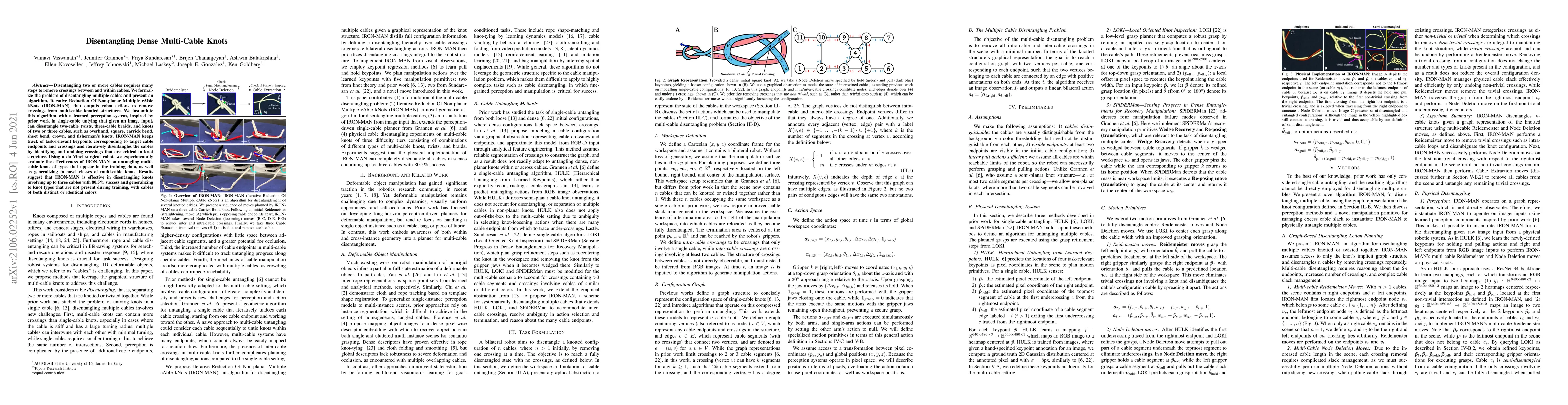 IRON-MAN introduces a novel algorithm for disentangling multi-cable knots using a graph-based approach, combined with learned perception components for physical robotic implementation.