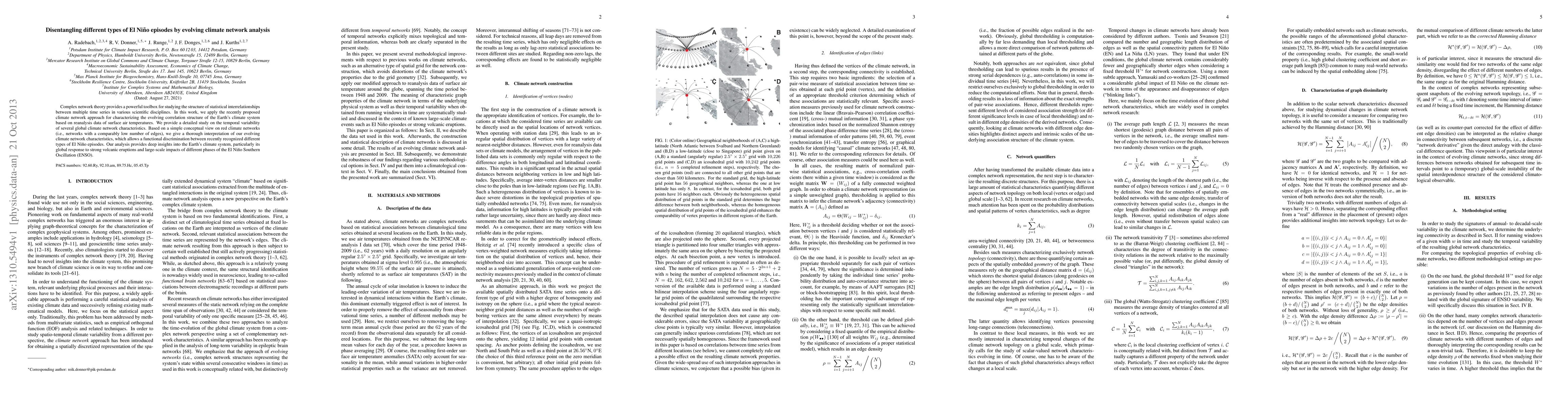 This paper uses evolving climate network analysis to study the correlation structure of Earth's climate system, focusing on surface air temperatures. It reveals distinct types of El Niño episodes through the analysis of network characteristics, offering insights into the global climate response to volcanic eruptions and ENSO phases.