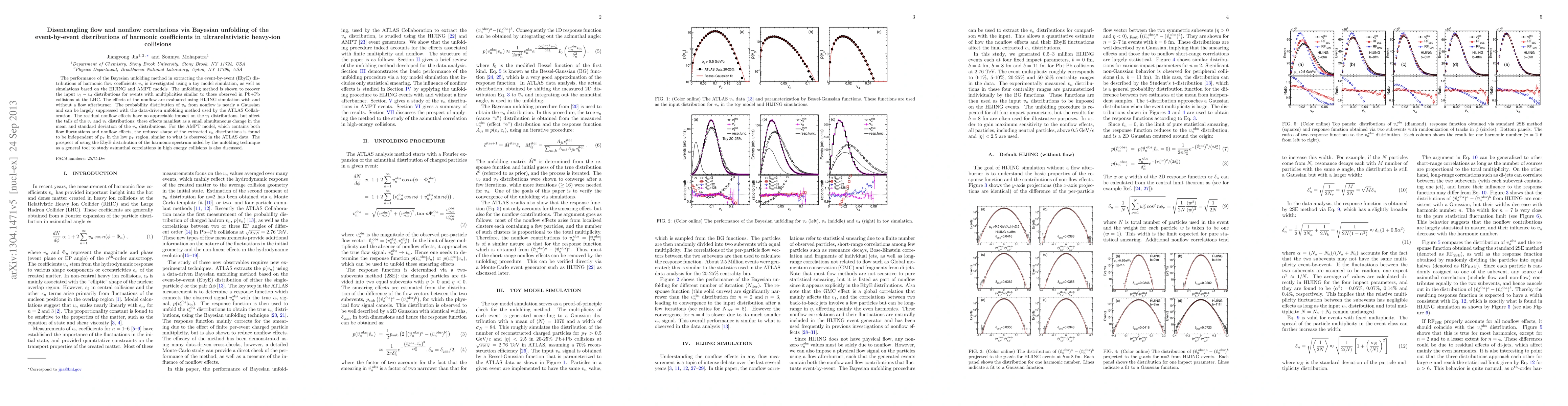 The performance of the Bayesian unfolding method in extracting the event-by-event (EbyE) distributions of harmonic flow coefficients v_n is investigated using a toy model simulation, as well as simulations based on the HIJING and AMPT models. The unfolding method is shown to recover the input v_2-v_4 distributions for multiplicities similar to those observed in Pb+Pb collisions at the LHC. The effects of the nonflow are evaluated using HIJING simulation with and without a flow afterburner. The probability distribution of v_n resulting only from nonflow in HIJING is nearly a Gaussian and can be largely suppressed in the data-driven unfolding method used by the ATLAS Collaboration. The residual nonflow effects have no appreciable impact on the v_3 distributions, but are found to affect the tails of the v_2 and v_4 distributions; these effects manifest as a small simultaneous change in the mean and standard deviation of the $v_n$ distributions. For the AMPT model, which contains both flow fluctuations and nonflow effects, the reduced shape of the extracted v_n distributions is found to be independent of pT in the low pT region, similar to what is observed in the ATLAS data. The prospect of using the EbyE distribution of the harmonic spectrum aided by the unfolding technique as a general tool to study azimuthal correlations in high energy collisions is also discussed.