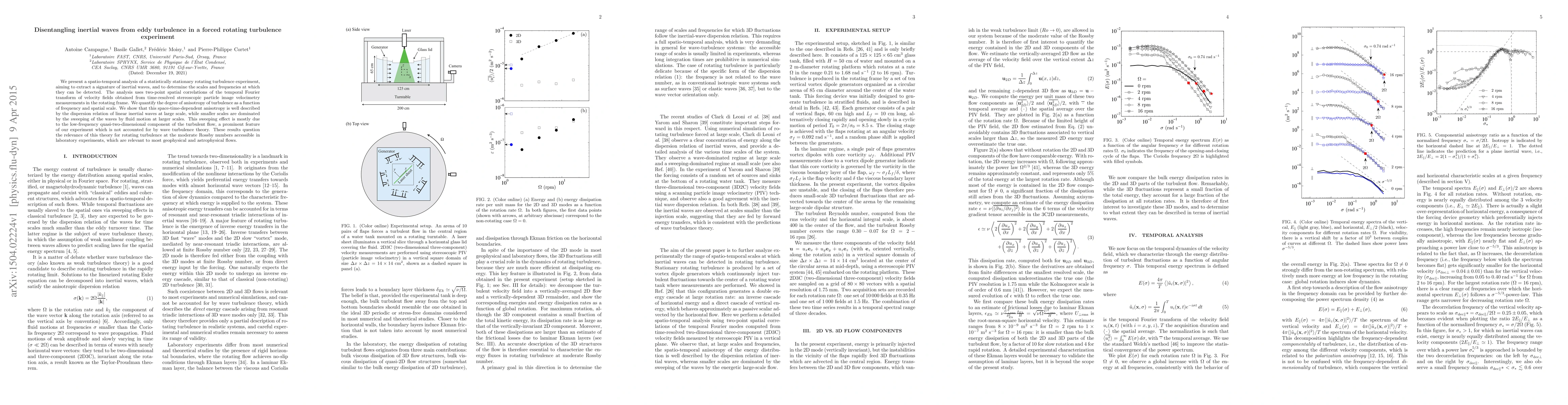 This paper analyzes rotating turbulence to distinguish inertial waves from eddy turbulence, finding that large-scale inertial waves follow a dispersion relation, while smaller scales are influenced by sweeping effects from low-frequency turbulence, challenging existing wave turbulence theory for geophysical flows.