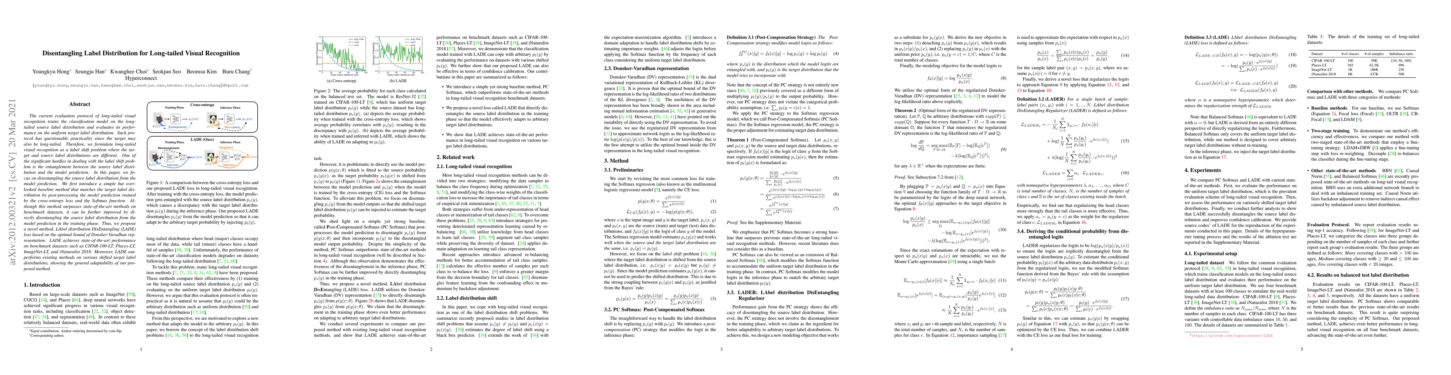 This paper addresses long-tailed visual recognition as a label shift problem, proposing a novel LAbel distribution DisEntangling (LADE) loss to disentangle the source label distribution from model predictions during training. The LADE loss achieves state-of-the-art performance on benchmark datasets and demonstrates adaptability to various shifted target distributions.