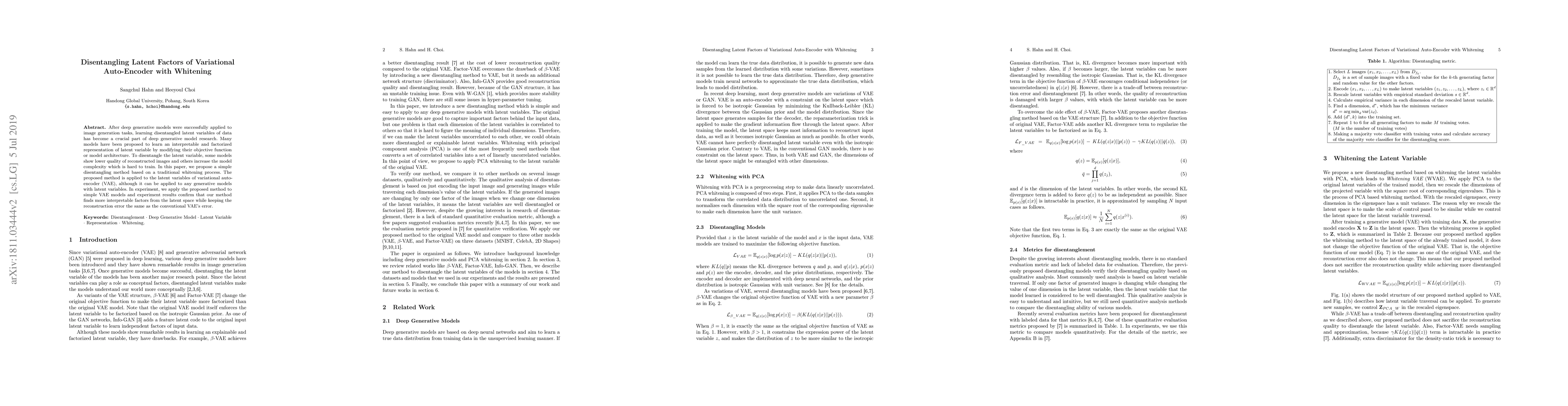 This paper proposes a simple disentangling method based on a whitening process applied to the latent variables of variational auto-encoders (VAEs) to achieve more interpretable factors without increasing reconstruction error, demonstrating its effectiveness through experiments on simple VAE models.