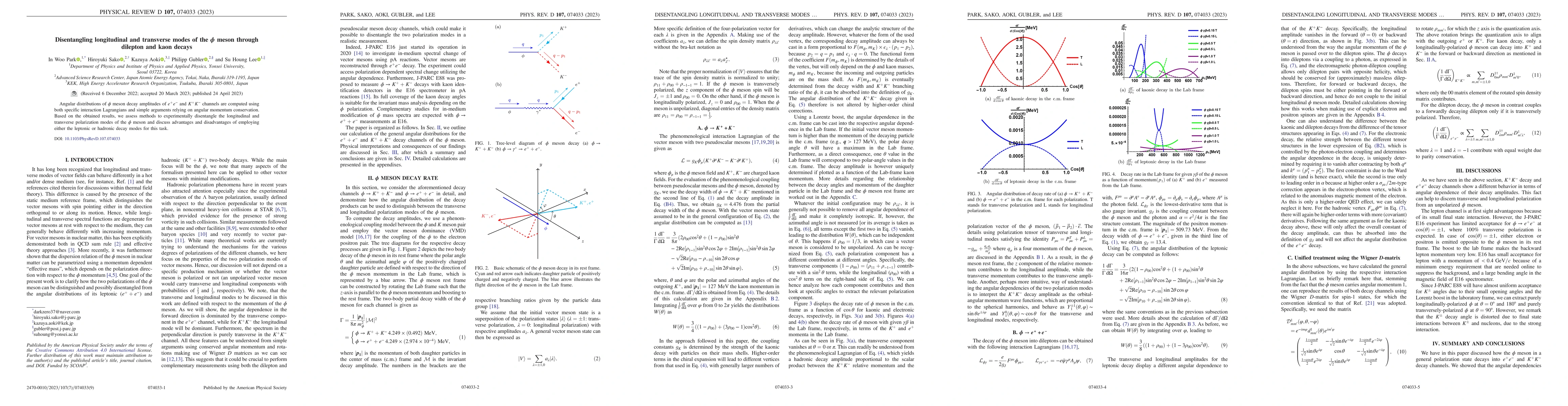 This paper computes angular distributions for $\phi$ meson decay in $e^+e^-$ and $K^+K^-$ channels to distinguish between longitudinal and transverse modes, evaluating the effectiveness of leptonic versus hadronic decay methods for this purpose. The study highlights the advantages and limitations of each approach for experimental analysis.
