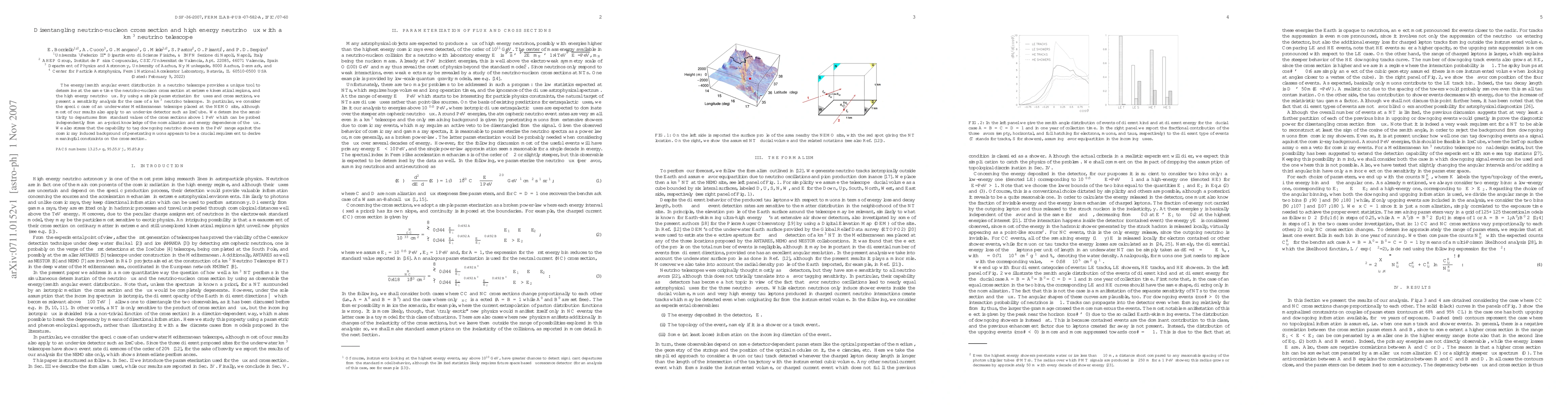 This paper explores how a km^3 neutrino telescope can simultaneously determine the neutrino-nucleon cross section and high energy neutrino flux through an energy-zenith angular event distribution analysis. The study assesses the sensitivity of a Mediterranean underwater telescope, highlighting the need to distinguish PeV-range downgoing showers from cosmic ray-induced muon backgrounds for meaningful cross-section constraints.