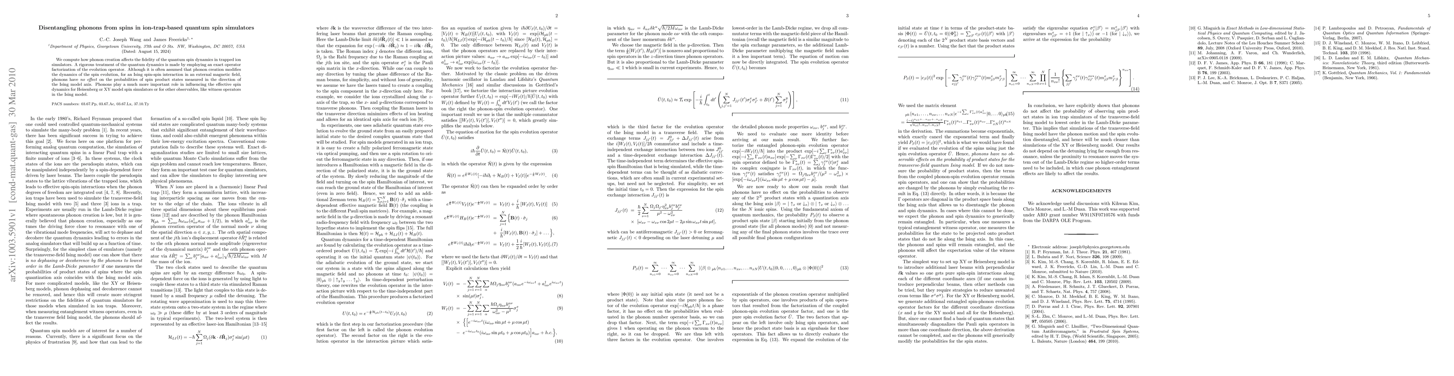 We compute how phonon creation affects the fidelity of the quantum spin dynamics in trapped ion simulators. A rigorous treatment of the quantum dynamics is made by employing an exact operator factorization of the evolution operator. Although it is often assumed that phonon creation modifies the dynamics of the spin evolution, for an Ising spin-spin interaction in an external magnetic field, phonons have \textit{no effect} on the probabilities of spin product states measured in the direction of the Ising model axis. Phonons play a much more important role in influencing the effective spin dynamics for Heisenberg or XY model spin simulators or for other observables, like witness operators in the Ising model.