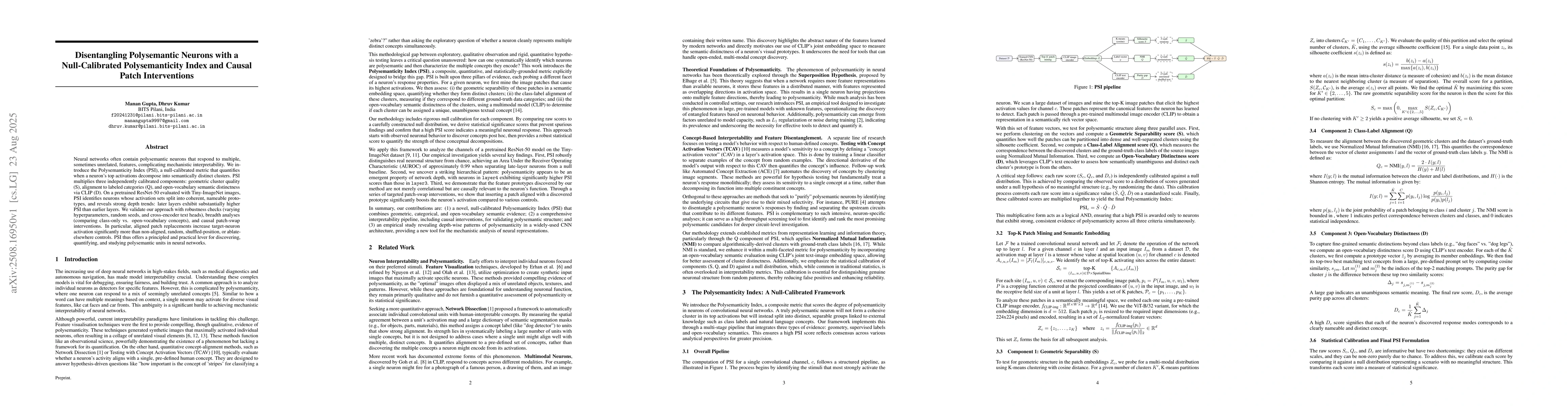 Neural networks often contain polysemantic neurons that respond to multiple, sometimes unrelated, features, complicating mechanistic interpretability. We introduce the Polysemanticity Index (PSI), a null-calibrated metric that quantifies when a neuron's top activations decompose into semantically distinct clusters. PSI multiplies three independently calibrated components: geometric cluster quality (S), alignment to labeled categories (Q), and open-vocabulary semantic distinctness via CLIP (D). On a pretrained ResNet-50 evaluated with Tiny-ImageNet images, PSI identifies neurons whose activation sets split into coherent, nameable prototypes, and reveals strong depth trends: later layers exhibit substantially higher PSI than earlier layers. We validate our approach with robustness checks (varying hyperparameters, random seeds, and cross-encoder text heads), breadth analyses (comparing class-only vs. open-vocabulary concepts), and causal patch-swap interventions. In particular, aligned patch replacements increase target-neuron activation significantly more than non-aligned, random, shuffled-position, or ablate-elsewhere controls. PSI thus offers a principled and practical lever for discovering, quantifying, and studying polysemantic units in neural networks.