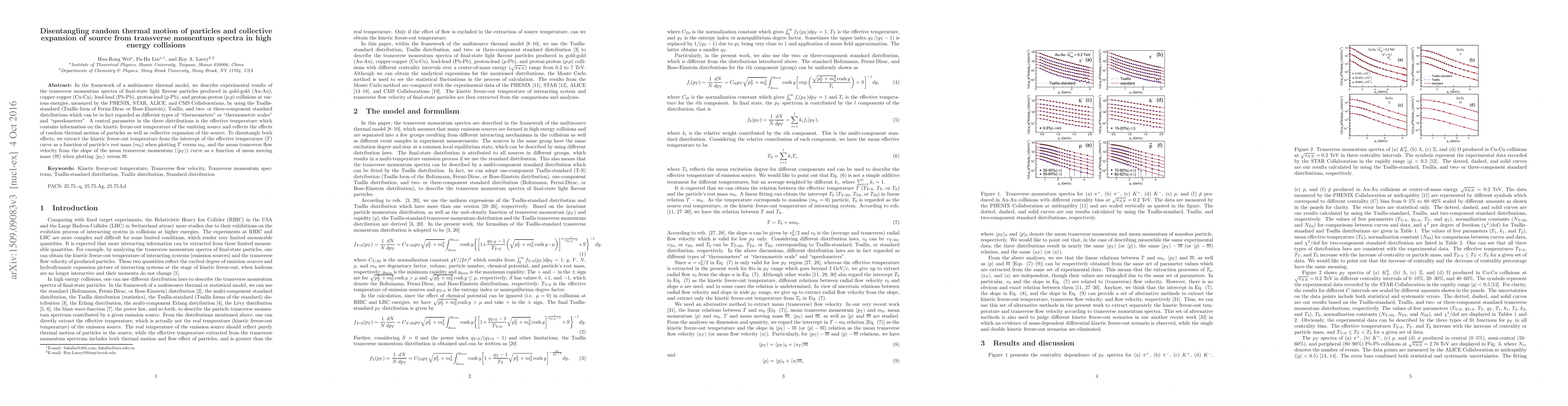 This paper uses a multisource thermal model to analyze transverse momentum spectra from various high-energy collisions, employing Tsallis distributions to disentangle random thermal motion from collective source expansion. The effective temperature is extracted to determine the kinetic freeze-out temperature, while the mean transverse flow velocity is derived from the slope of the mean transverse momentum versus mean moving mass.