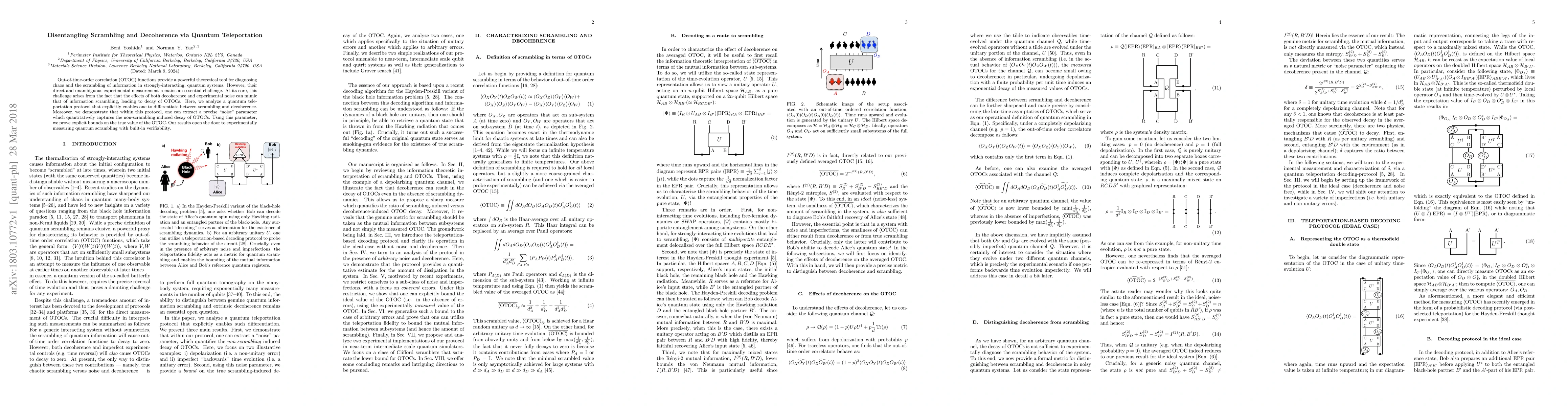 This paper proposes a quantum teleportation protocol to distinguish between information scrambling and decoherence in quantum systems. It introduces a "noise" parameter to quantify non-scrambling induced OTOC decay, providing explicit bounds on the true OTOC value and enabling more accurate experimental measurement of quantum scrambling.