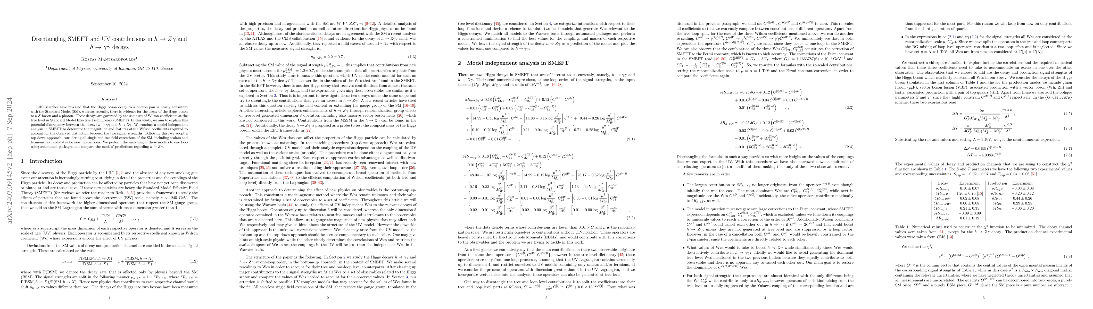 LHC searches have revealed that the Higgs boson decay to a photon pair is nearly consistent with the Standard Model (SM), whereas recently, there is evidence for the decay of the Higgs boson to a $Z$-boson and a photon. These decays are governed by the same set of Wilson-coefficients at the tree level in Standard Model Effective Field Theory (SMEFT). In this study, we aim to explain this potential discrepancy between the decays $h\to \gamma \gamma$ and $h\to Z\gamma$. We conduct a model-independent analysis in SMEFT to determine the magnitude and features of the Wilson coefficients required to account for the observed distinction between the two signal strengths. Following this, we adopt a top-down approach, considering all single and two field extensions of the SM, including scalars and fermions, as candidates for new interactions. We perform the matching of these models to one loop using automated packages and compare the models' predictions regarding $h\to Z\gamma$.