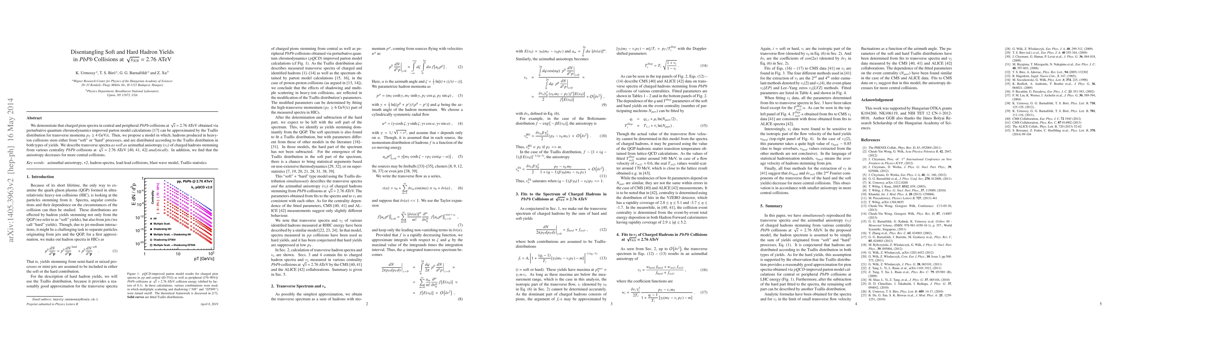 We demonstrate that charged pion spectra in central and peripheral PbPb collisions at $\sqrt{s}$ = 2.76 ATeV obtained via perturbative quantum chromodynamics improved parton model calculations [17] can be approximated by the Tsallis distribution for transverse momenta $p_T \geq$ 4 GeV/c. Then, we propose a model in which, hadrons produced in heavy-ion collisions stem either from "soft" or "hard" processes, and are distributed according to the Tsallis distribution in both types of yields. We describe transverse spectra as well as azimuthal anisotropy ($v_2$) of charged hadrons stemming from various centrality PbPb collisions at $\sqrt{s}$ = 2.76 ATeV [40,41,42] analytically. In addition, we find that the anisotropy decreases for more central collisions.