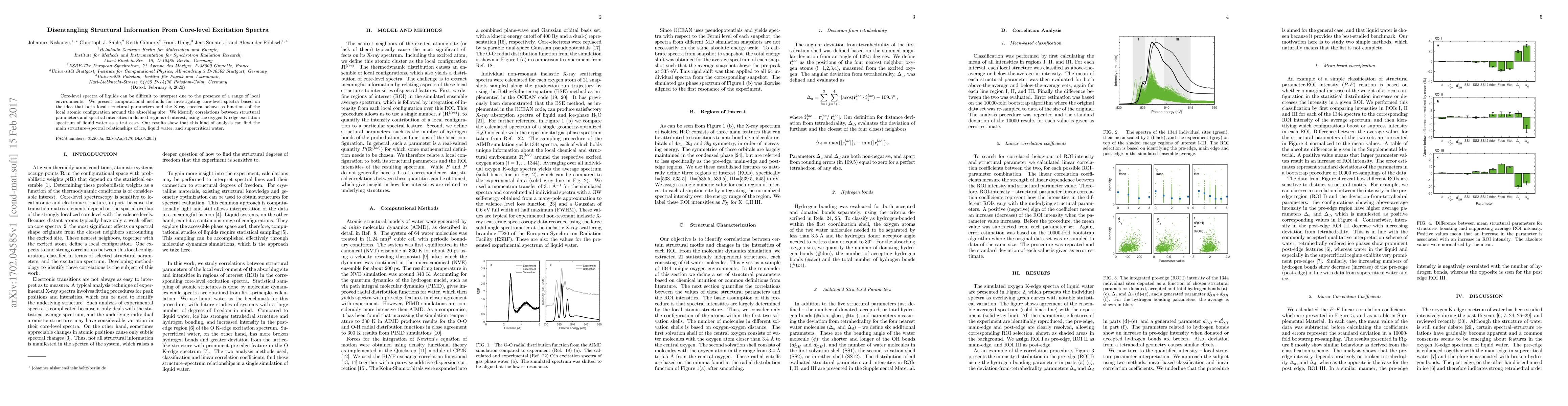 Researchers developed a method to analyze core-level spectra of liquids by correlating structural parameters with spectral intensities, showing relationships between structure and spectrum in ice, liquid water, and supercritical water.