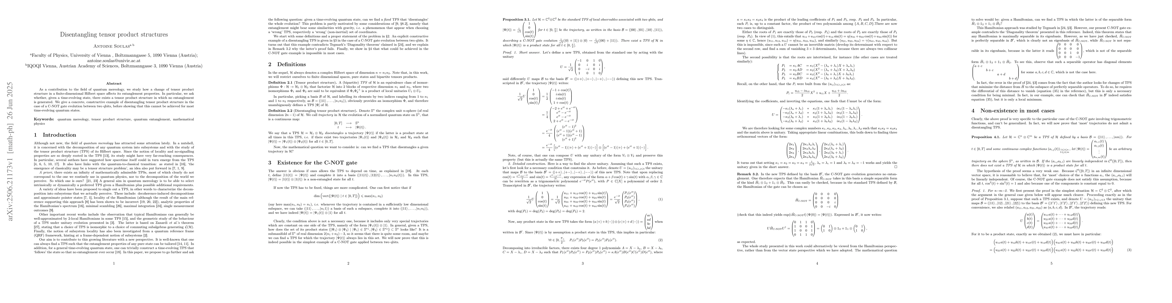 The paper provides rigorous mathematical proofs demonstrating the non-existence of disentangling tensor product structures for most quantum evolutions, and explicitly constructs such structures in special cases, challenging existing theorems in quantum mereology.