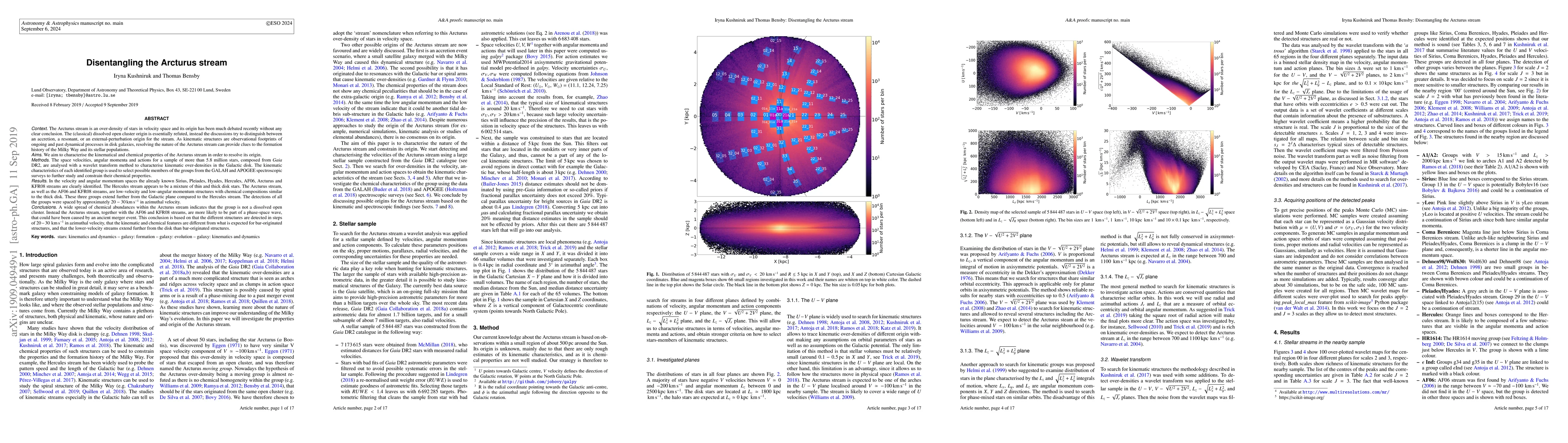 Researchers identified 7 distinct star streams in the Milky Way, including the Arcturus stream, using a wavelet transform on Gaia DR2 data. These streams provide clues to the galaxy's formation history and stellar populations.