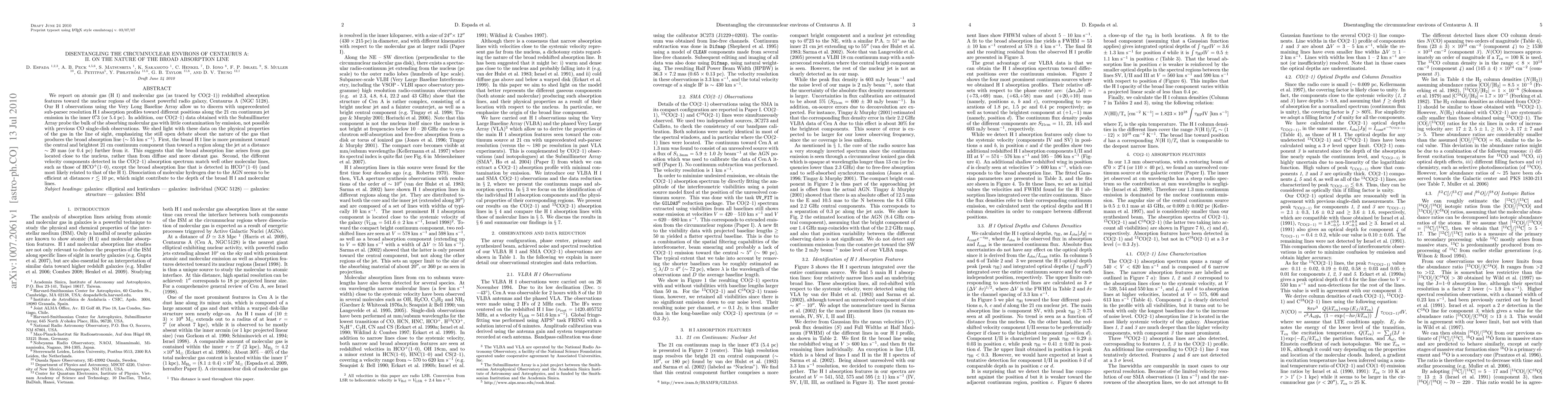 This study uses high-resolution observations to investigate the nature of broad absorption lines in Centaurus A, revealing that the prominent H I line is closer to the nucleus, suggesting it originates from nearby gas. The CO(2-1) data indicate molecular gas dissociation by the AGN within 10 pc, contributing to the absorption line depth.