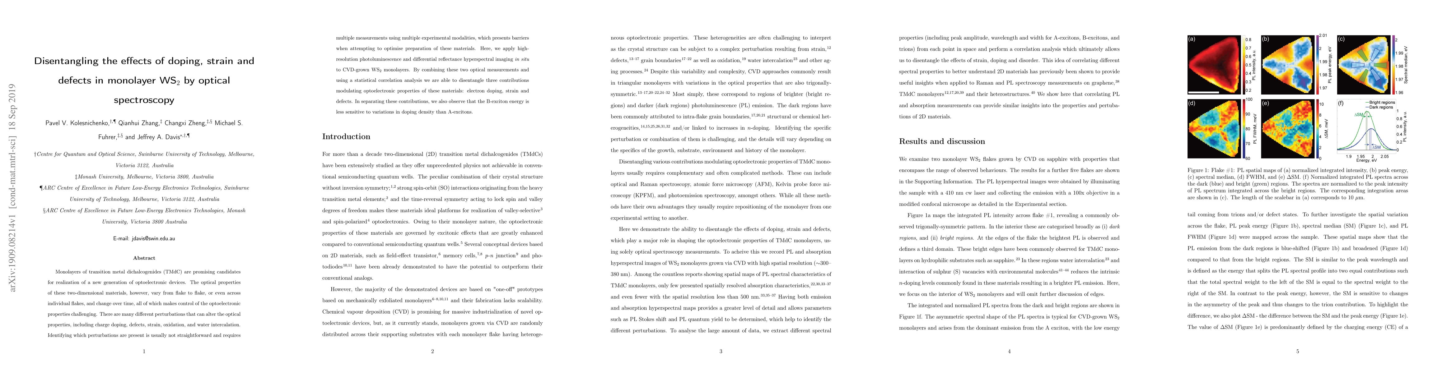 Researchers used optical spectroscopy to distinguish between effects of doping, strain, and defects in monolayer WS2, revealing that the B-exciton energy is less sensitive to variations in doping density than A-excitons.